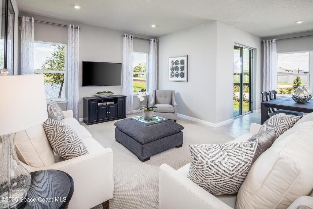 Brooks Landing. Close to area beaches, recreation & entertainment. Near Chain of Lakes Park, Indian River Lagoon, & Kennedy Space Center. The Panama single-family home is what you always pictured for yourself. Step in from your 2-car garage or front porch and past the first of 3 spacious bedrooms and a full bath with double vanity. In your dining area, prepare to be wowed. This space is highlighted by your gourmet kitchen with a large island overlooking a lanai and a great room where friends and family will gather. Your luxurious owner's suite includes a double vanity owner's bath and a huge walk-in closet. WIFI-enabled garage opener and Ecobee thermostat. STOCK PHOTOS, PRICES SUBJECT TO CHANGE. Closing costs assistance with use of Builder's affiliated lender.