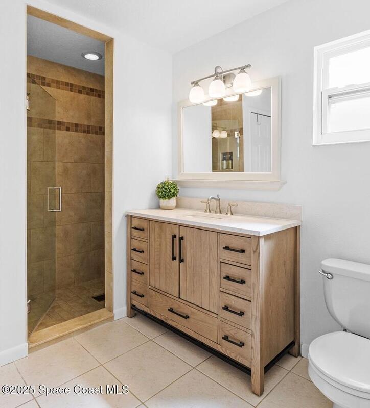 WELCOME to this charming and beautiful Merritt Island home nestled in the heart of Diana Shores. Well maintained and great upgrades throughout! All new windows and sliding glass doors installed 2023, beautifully upgraded bathrooms 2025, stainless steel LG/Whirlpool/Bosch kitchen appliances, hardwood kitchen cabinets, Trane A/C installed 2023, new air ducts, new Honeywell Home Thermostat, new electrical panel, new tankless water heater, Atlantic storm shutters, attic lights, interior and exterior freshly painted 2025, Newest version ADT wireless security on windows and doors, Ring Doorbell, new sprinkler heads front and back yard, new garage door, roof 2011, screened in back lanai, large brick fireplace, Muscadine grapevine arbor in the backyard, Meyer lemon tree, hot tub 2014 with new pump, working shed, refreshing front porch under a gorgeous oak tree, and fenced in backyard! Don't miss out on this heart warming home in a great location!