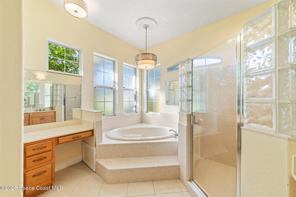 - Interior FeaturesBreakfast Bar, Breakfast Nook, Built-in Features, Ceiling Fan(s), Eat-in Kitchen, His and Hers Closets, Kitchen Island, Pantry, Primary Bathroom -Tub with Separate Shower, Primary Downstairs, Split Bedrooms, Vaulted Ceiling(s) and Walk-In Closet(s)