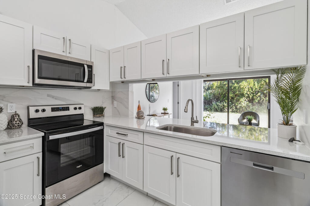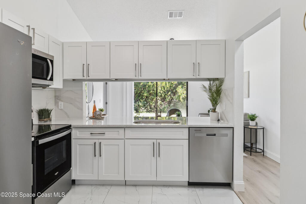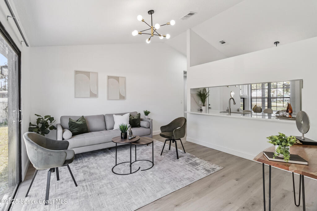Charming Move-In Ready Home in Palm Bay! Well-maintained 3-bedroom, 2-bath home featuring a bright open layout with abundant natural light and stylish flooring throughout. The modern kitchen offers stainless steel appliances, ample cabinetry, and generous counter space, opening to a comfortable living and dining area perfect for gatherings. Bedrooms are spacious and inviting, with the primary suite boasting a private bath. Enjoy a landscaped backyard ideal for relaxing or entertaining, plus an attached garage and central air. Conveniently located near schools, parks, shopping, and major roadways.