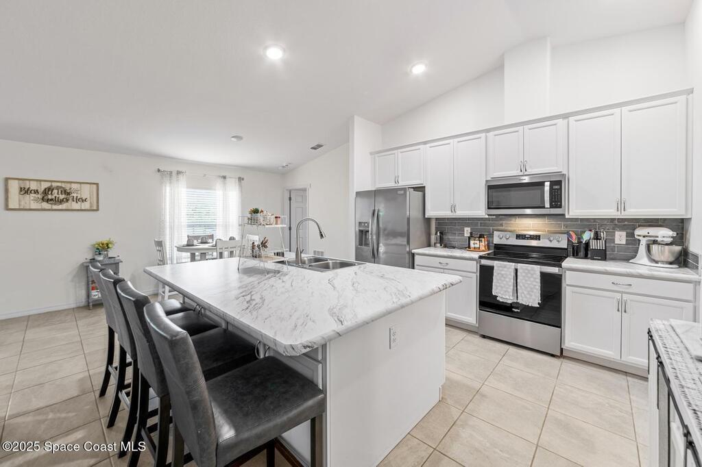 This extremely functional Capri floor plan by Avtec Homes is basically NEW. City water and sewer which is a HUGE BONUS in Palm Bay. Barely lived in and built at the end of 2021, this 3 bedroom PLUS an office is the perfect layout. This move in ready home is spacious, open, and has a big enough yard to accommodate a pool. Less than 10 minutes to Hammock Landing where you'll find tons of shopping and dining. No carpet.