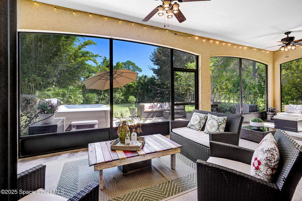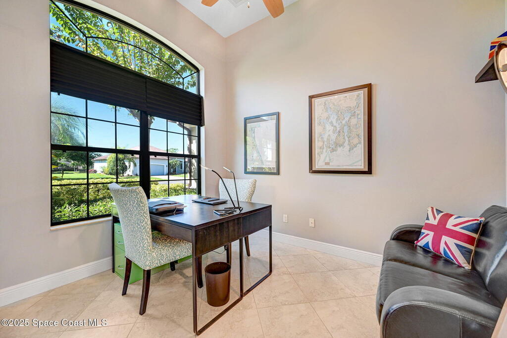 NEW PRICE! Prepare to be impressed! Discover this spectacular 3-bed/2-bath, 2,078 sq. ft. Melbourne home in the sought after gated community at Veranda Place. Built in 2010 on a substantial 0.3-acre lot, it features an attached 2-car garage and a dedicated separate office.The open-concept design is perfect for entertaining, centered around a chef-ready kitchen with an island and breakfast bar. The private primary suite boasts a Jacuzzi tub and a massive separate shower.Unwind and enjoy the perfect Florida evenings on the screened porch, which overlooks a mature garden with lush green landscaping --a tranquil paradise for butterflies and hummingbirds.Enjoy an ideal central location: just 15 minutes from the beach/Indian River and under 5 minutes to I-95 and all amenities.