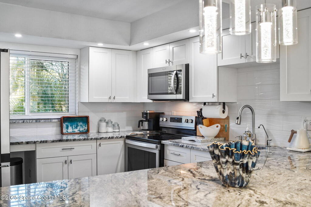 Welcome to 1001 W Eau Gallie Blvd, Unit 229--a bright, move-in-ready home in a canal-facing building steps from the Eau Gallie Arts District (EGAD) and just minutes across the causeway to Canova Beach. Start your day with coffee on the private balcony while boats drift by; stretch out on the property's expansive lawn to the river for sunset; then cool off at the community canal-facing pool. Weekends are effortless: stroll to murals, galleries, cafes, breweries, and markets, or launch a kayak/paddleboard from the community dock with boat access via the canal.Inside, modern comfort meets durability: impact windows (2024) and custom impact sliders, luxury plank flooring throughout, and a smart layout with a barn door that creates a private primary suite, plus in-unit laundry. The remodeled kitchen shines with quartz countertops, an oversized island with storage on both sides, soft-close cabinetry, a deep farmhouse sink, and in-sink water filtration. All major appliances included
