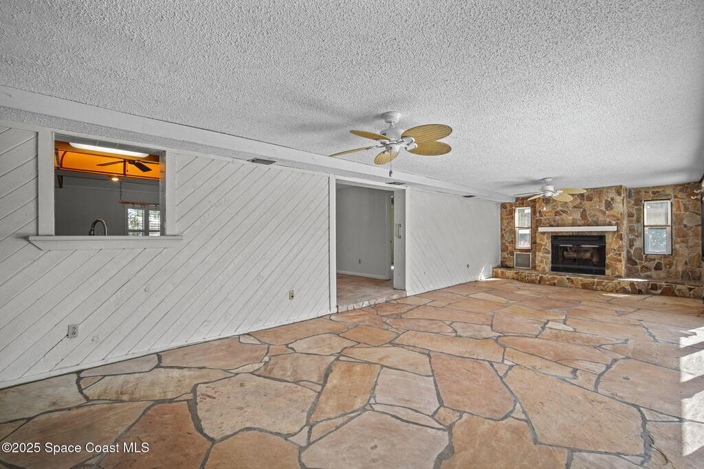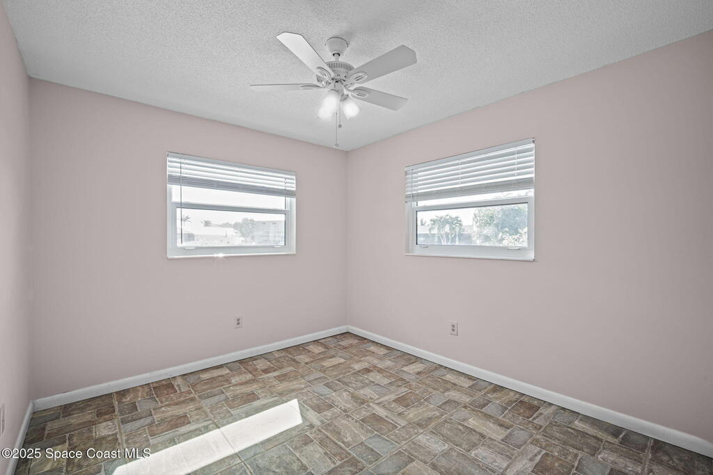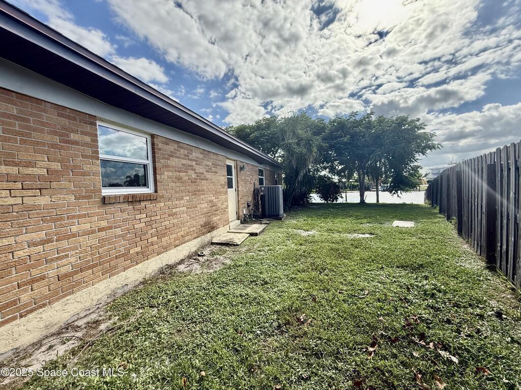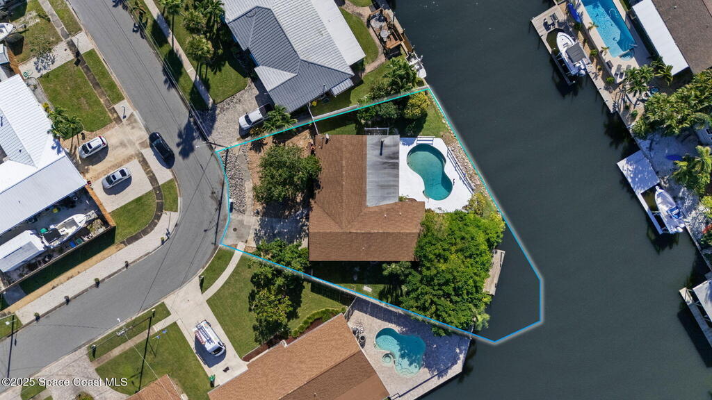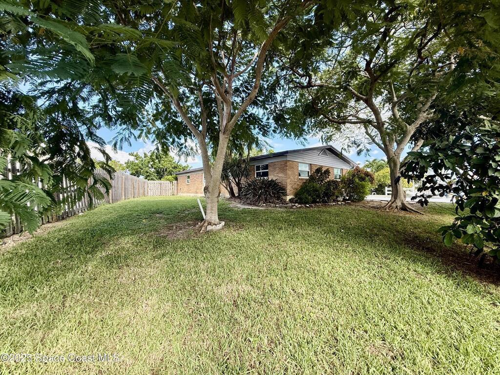 This waterfront pool home on Merritt Island boasts approximately 176 feet of frontage along a navigable deep-water canal featuring a spacious turnaround basin suitable for large vessels. With direct access to the Banana River and ocean via Port Canaveral, the property offers exceptional boating opportunities. Constructed from concrete block, the residence includes a four-bedroom split plan with two bathrooms, an inground pool, and all-tile flooring throughout. The bathrooms have been renovated, and the roof was replaced in 2016, with the HVAC system updated in 2017. Hurricane impact windows were installed in 2022, enhancing safety and energy efficiency. The open layout encompasses a kitchen, living room, family room, and a 35x13 Florida room complete with a fireplace, which provides access to a bathroom and features large sliding doors leading to the pool and waterfront. The expansive lot is surrounded by a privacy fence, mature landscaping and shade trees,