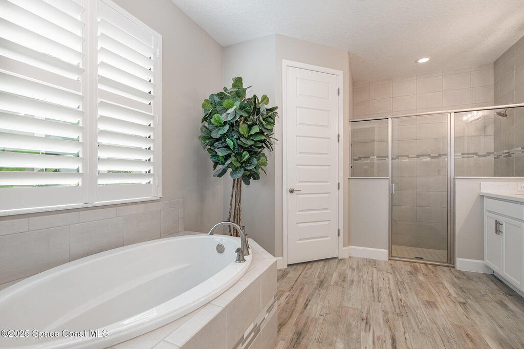 - Interior FeaturesCeiling Fan(s), Entrance Foyer, His and Hers Closets, Kitchen Island, Open Floorplan, Pantry, Primary Bathroom - Tub with Shower, Primary Bathroom -Tub with Separate Shower, Split Bedrooms and Walk-In Closet(s)