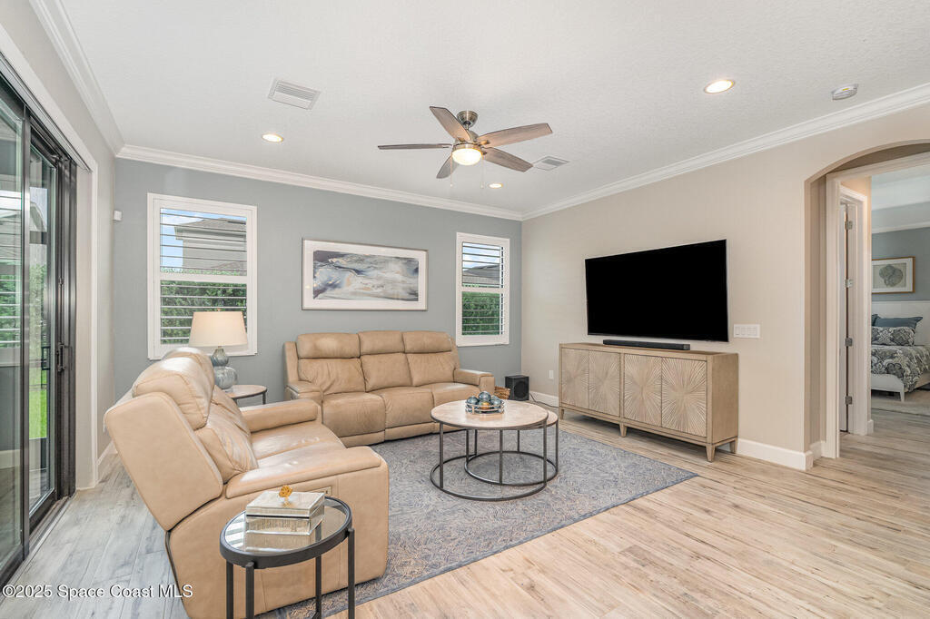 Buyers don't want to miss this--''Seller will contribute 1% of loan amount towards buyers's loan discount fee or a buydown fund, in order to assist with reducing buyers's payment with acceptable offer'' This beautifully maintained and exquisitely upgraded home in the heart of Viera!! This spacious 4 bedroom 3.5 bath residence offers comfort, style and functionality perfect for any family. Nestled on a quiet cul-de-sac, this home features hurricane impact windows, tile flooring throughout, plantation shutters, crown molding, tray ceiling in primary bedroom. Full overlay kitchen cabinets, Quartz countertops, tile backsplash. A screened charming lanai for outdoor relaxation. The open layout is ideal for entertaining, while each room is tastefully decorated and move in ready. With ample space for everyone This home is a rare find in one of Viera's most desirable neighborhoods. Enjoy resort-style amenities at the Addison Village Club