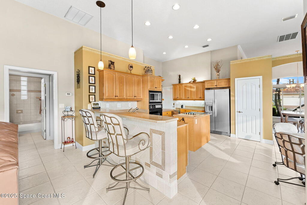 Discover resort-style living in Viera East Golf Club with this beautiful 3-bedroom, 2.5-bath single-family home offering 2,178 sq. ft. of comfortable and functional living space. Built with durable concrete block construction and featuring a BRAND-NEW tile roof, 2021 Water Heater & 2015 HVAC, this home combines quality and peace of mind.Step inside to a split floor plan designed for both privacy and entertaining. The home features formal living and dining rooms for gatherings, along with a spacious kitchen showcasing granite countertops, ample cabinetry, and views of the pool and golf course. The primary suite offers a relaxing retreat with direct access to the screened patio and a large walk-in shower.Outside, enjoy true Florida living on the screened lanai with a sparkling pool and spa, overlooking serene golf course and water views; the perfect backdrop for morning coffee or evening sunsets.