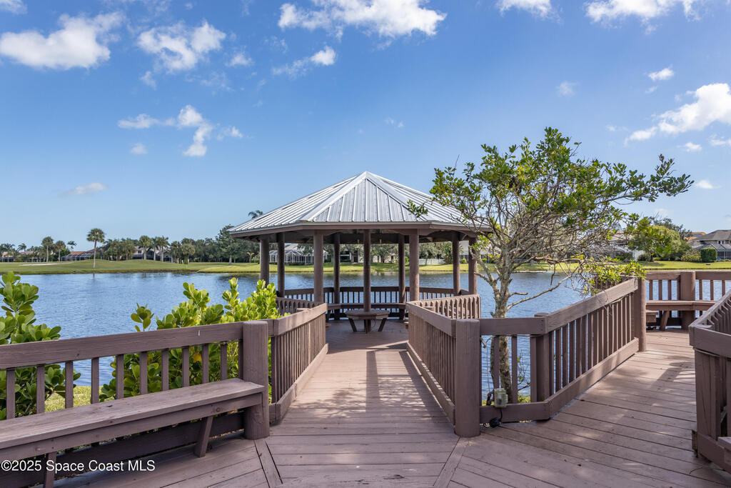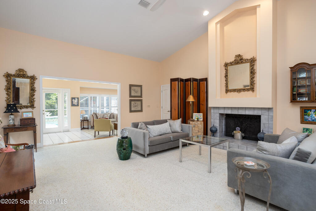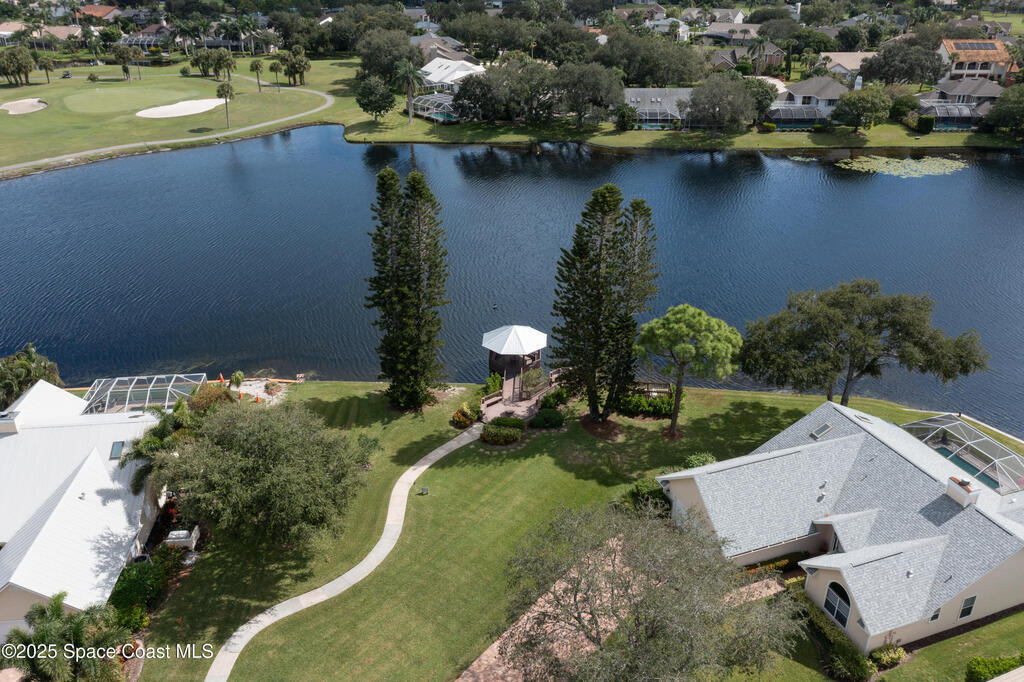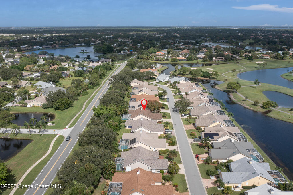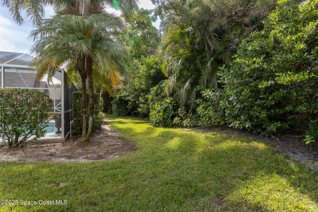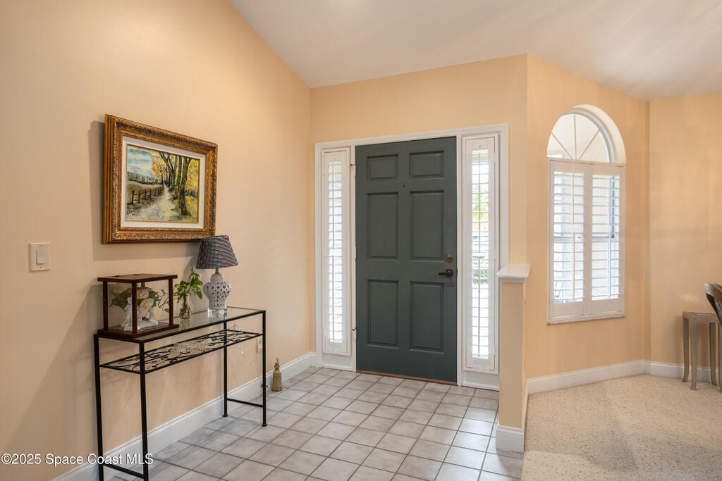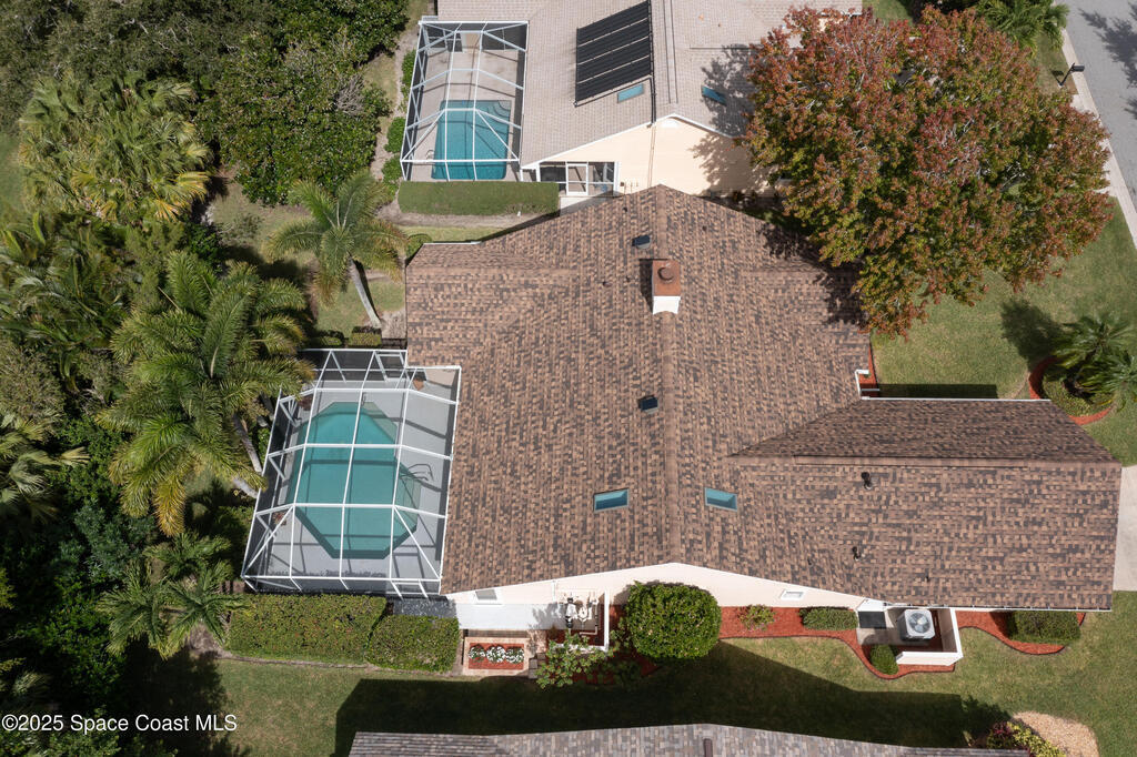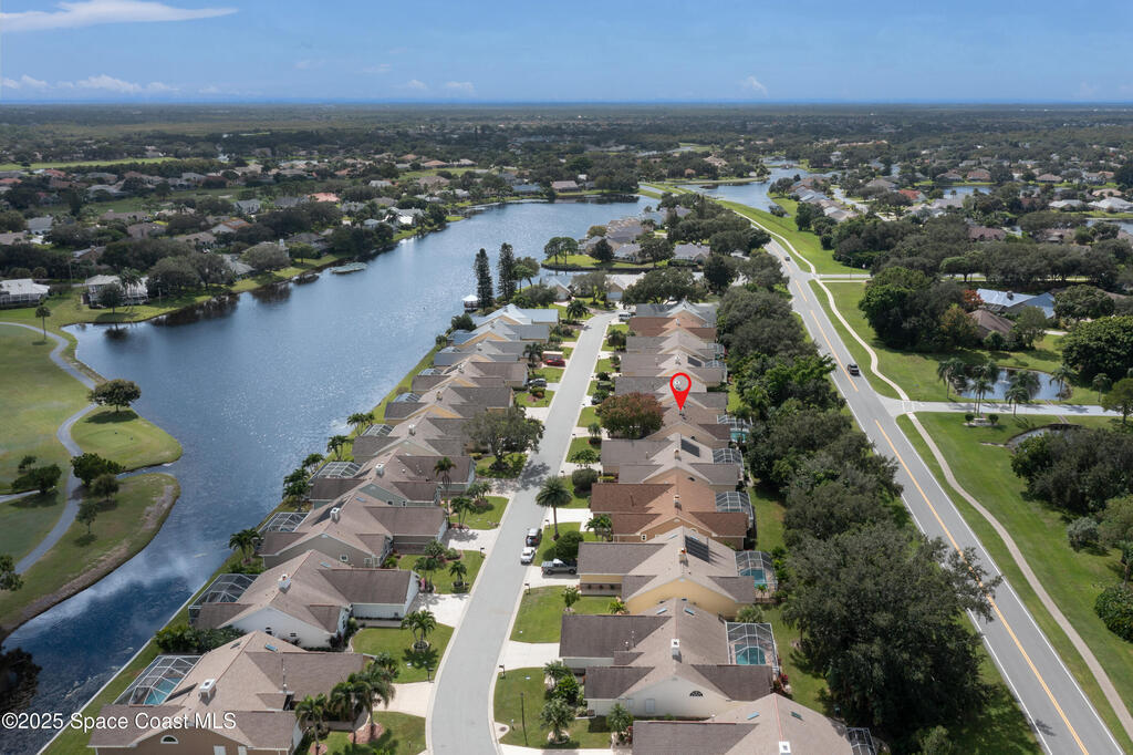 Immaculate pool home just minutes from Suntree Country Club, tucked away in the desirable Augusta Village community. Well maintained, this home features an open floor plan with vaulted ceilings, a spacious eat-in kitchen with skylights and stainless steel appliances, and a formal dining room. The remodeled master suite offers wood laminate flooring, a custom walk-in closet, and a luxurious bath with double vanity, oversized shower with bench, custom shelving, electric bidet, and linen closet. The living room opens to an enclosed lanai with French doors leading to a sparkling pool with waterfall, surrounded by a private, beautifully landscaped yard. Additional highlights include a new roof (2022), plantation shutters, built-in desk in the second bedroom, office/sewing room, and storm shutters. The low HOA includes lawn care, irrigation, landscaping, and access to a lakeside community gazebo. Conveniently located close to beaches, dining, shopping, and top-rated Suntree schools.