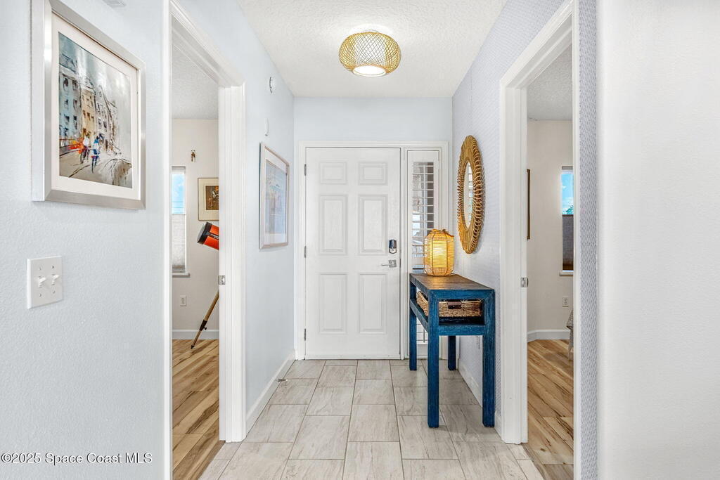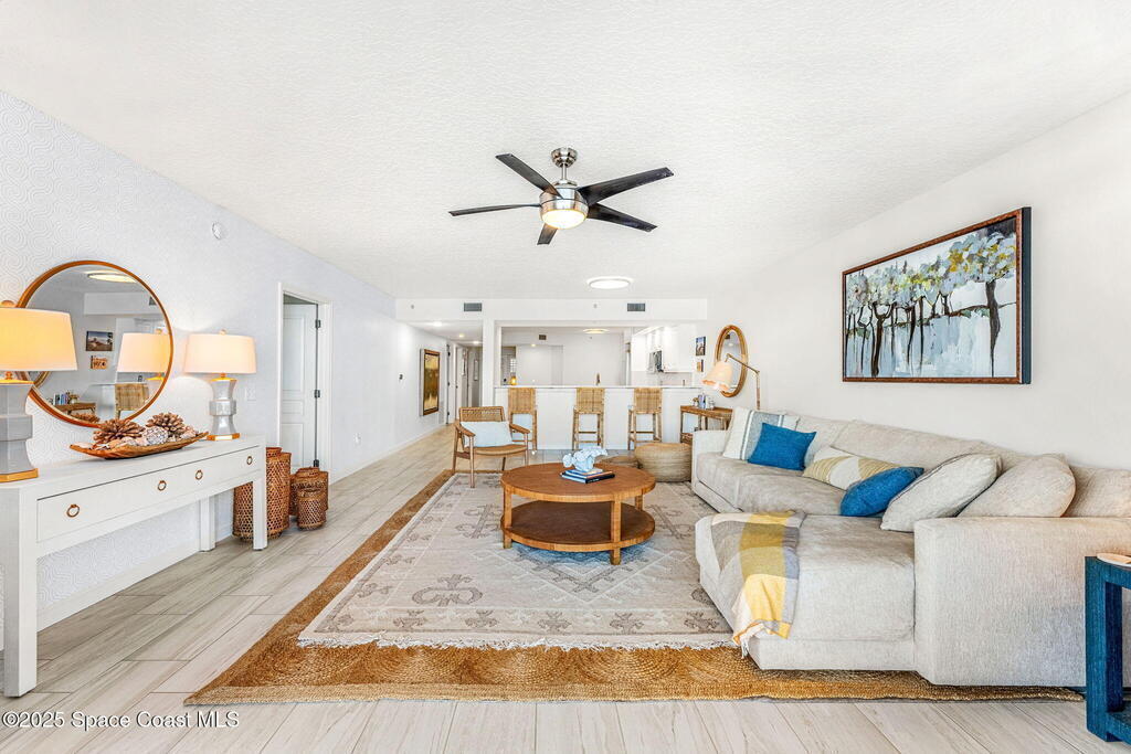 Step into coastal elegance this 3-bedroom, 2-bath luxury oceanfront condo perfectly perched on the 3rd floor in the heart of Indian Harbour Beach. Enjoy breathtaking ocean views and a seamless blend of style and comfort in one of Brevard's most desirable coastal communities. The home features customized closets in all bedrooms, wood laminate floors, and refreshed bathrooms with new hardware, faucets, and lighting. The kitchen has been beautifully redesigned with quartz countertops, stainless steel appliances, and an open-concept layout created by removing the kitchen/hallway wall--enhancing both space and natural light.Additional upgrades include Hunter Douglas electric shades, new sliders, modern fans, a new washer, and fresh paint accented with Serena & Lily designer wallpaper. Reserved underground garage parking with plenty of additional outdoor spaces, add convenience to your coastal lifestyle.
