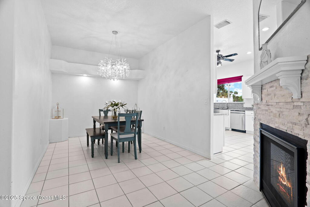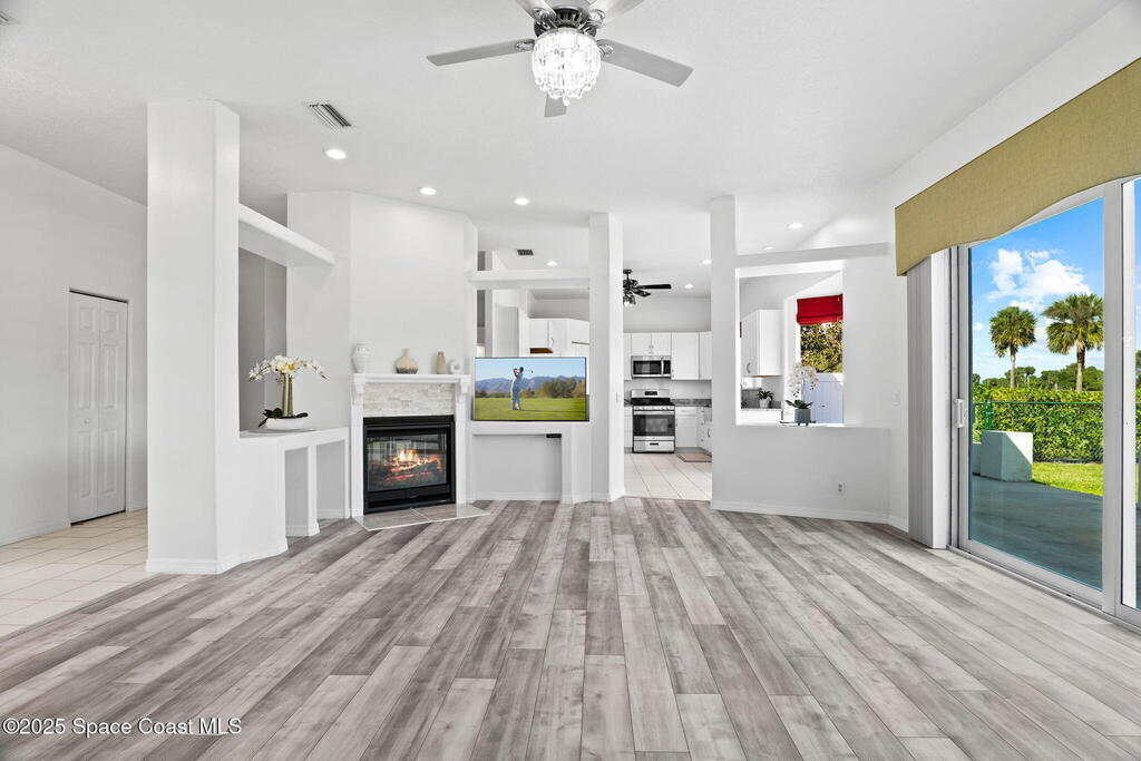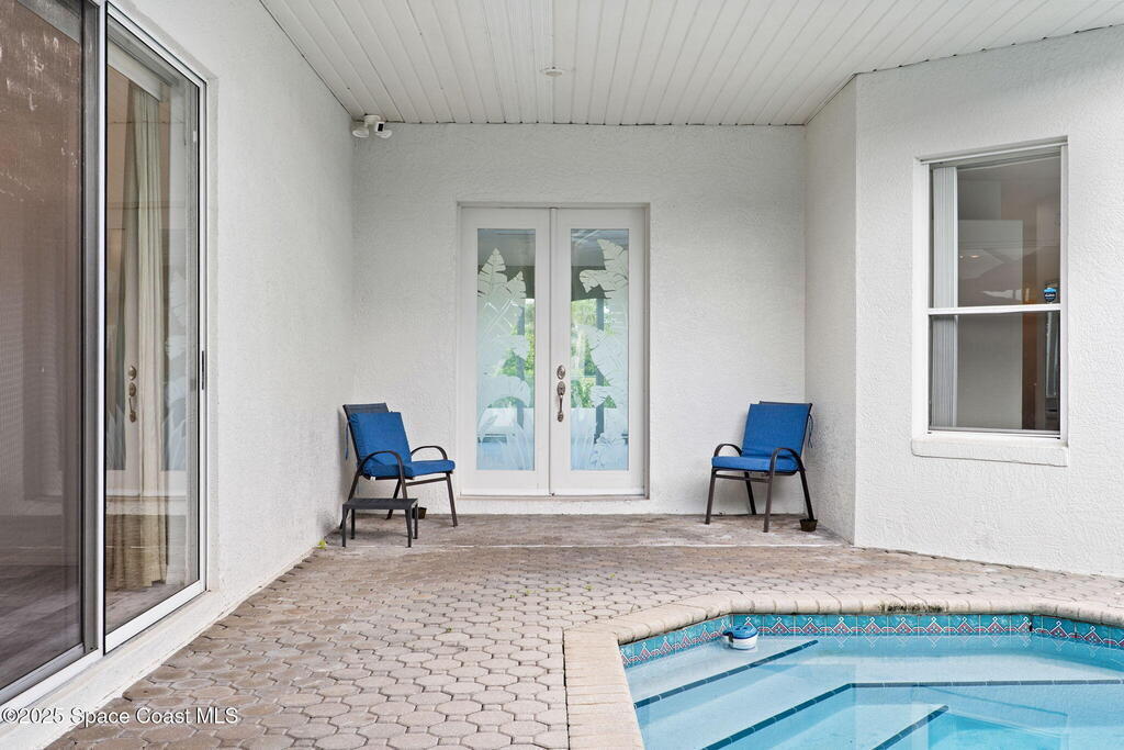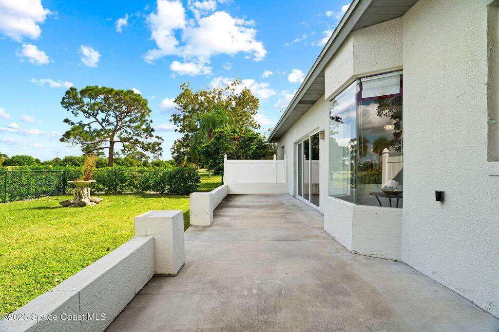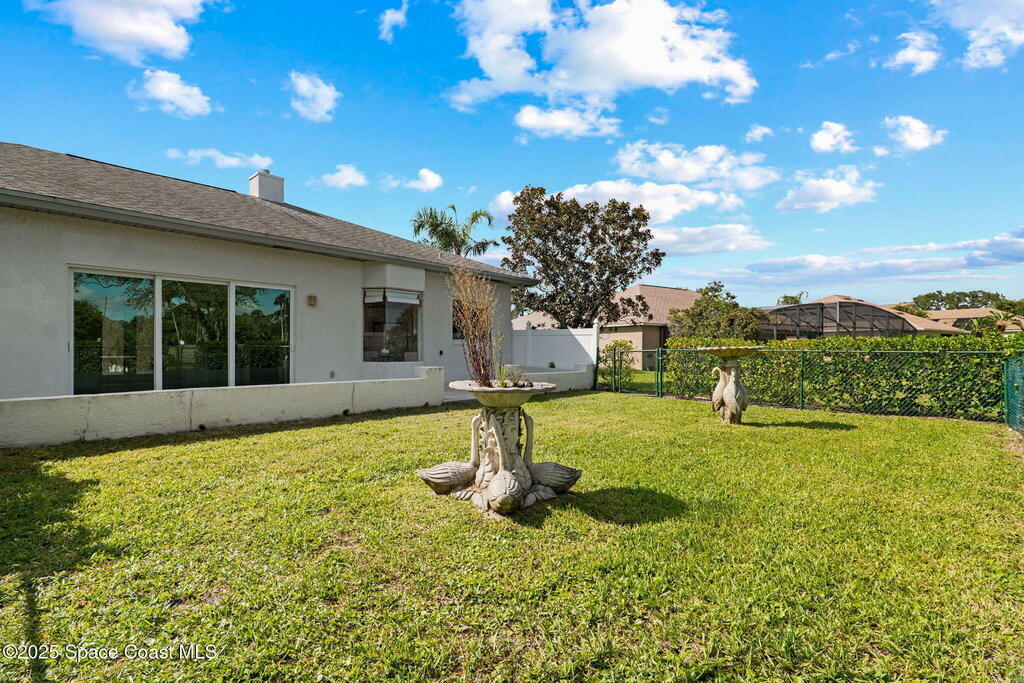 This home is located on a beautiful 18-hole course with a friendly clubhouse that serves food and drinks. Bar also has weekly Texas Hold'em, darts, trivia and other community activities. NO FLOOD INSURANCE IS REQUIRED FOR THIS PROPERTY! In addition, it has an enclosed HEATED POOL that ensures complete privacy. There is also a hot tub that waterfalls into the pool. The pool house can serve as a fourth bedroom with half bath and poolside shower. The master bedroom boasts a spacious bathroom with two walk-in closets. Both living room and kitchen are spacious with window treatments and appliances. There is a two sided gas fireplace facing the living room and dining room. Space coast GC is one of the few golf courses in Florida that allows a fenced back yard. The backyard is fenced in and surrounded by Hibiscus bushes with beautiful unobstructed views. Golf course is currently doing a $4,000,000 upgrade. All dog breeds accepted! Cocoa Beach and Port Canaveral are just minutes away
