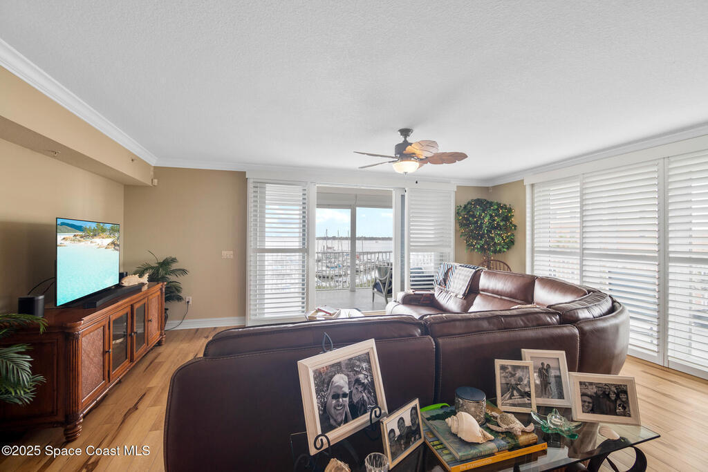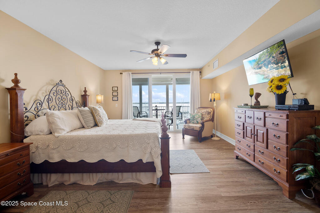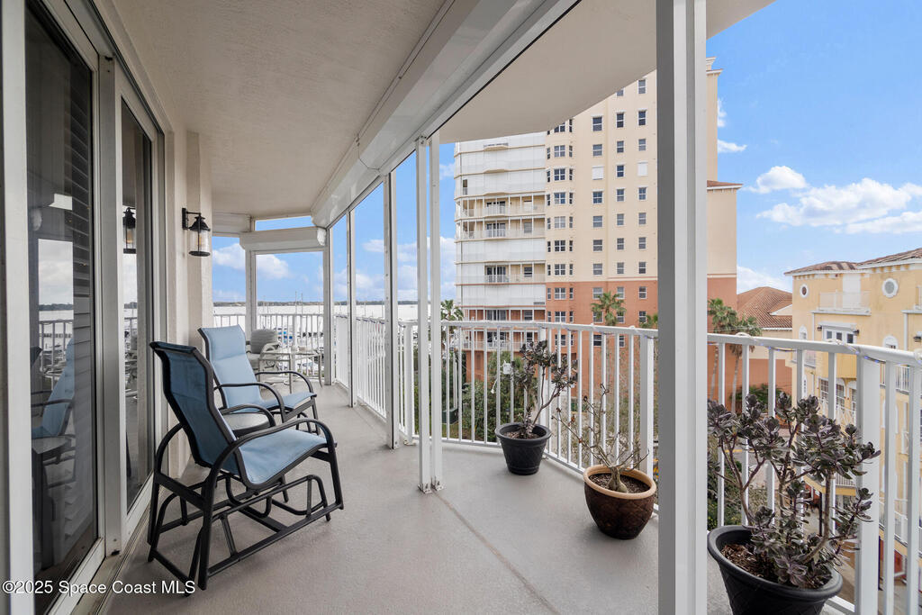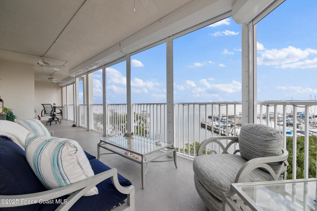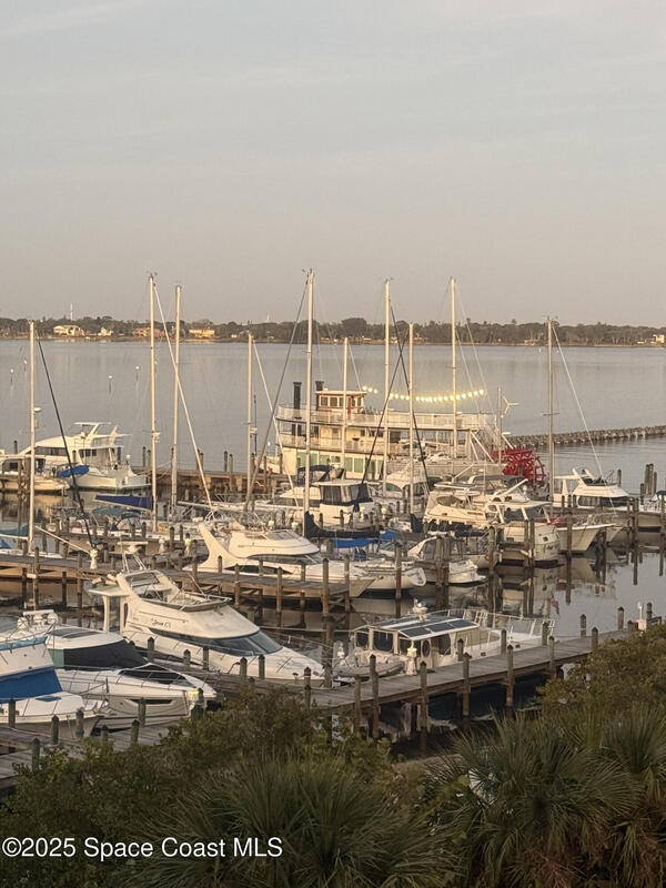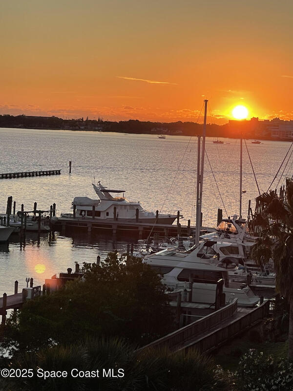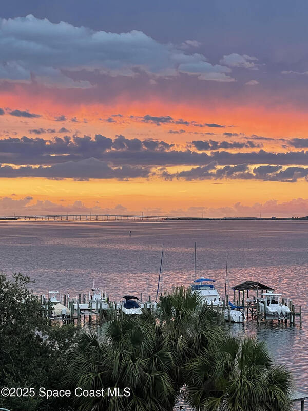 This stunning corner condominium with expansive wraparound balcony offers expansive views of the intracoastal waterway, captivating sunrises, and thrilling rocket launches from your 5th-floor corner unit in the highly sought-after Whitley Bay West. This beautifully updated condo features luxury vinyl plank flooring throughout, fresh paint, and upgrades, including new stainless steel LG dual wall oven with convection/microwave, new refrigerator, kitchen wine cooler, new LG stackable washer/dryer with steam feature, new granite vanities and upgraded toilets (including bidet), upgraded ceiling fans throughout including balcony, new AC units, fresh paint, new Bahama shutters & tastefully upgraded lighting fixtures. Enjoy the ultimate in waterfront living while being next to vibrant Cocoa Village, offering theaters, restaurants, coffee shops, and year-round events. Enjoy access to luxury community amenities, including a pool, jacuzzi, fitness center and club room.