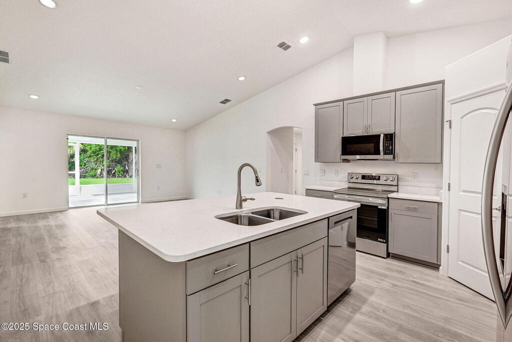Wow! New Low Price! Stone Accents Welcome you to this Spacious, Brand New 4 BD/3BA Home with 2-car garage & large 20x12 trussed covered screened porch for relaxing outdoors. The open-concept island kitchen features quartz countertops with undermount sink & level 2 cabinets with soft close + crown molding, stainless appliances (including a 25-cu. ft. fridge) & corner pantry. Durable Mohawk Revwood plank floors flow throughout with tile in baths & laundry. The 4th bedroom private bath with a 5' tile shower! The primary suite offers a tray ceiling, huge walk-in closet, & a tiled 5' shower. Other Features: Garage Door Opener, Attic Stairs, Marathon Water Treatment System (No Water Bill), Rounded Drywall Corners, Backyard Flood Lights, Dimmable LED lighting in Great Room & Primary. Kitchen & baths vent outside Inside laundry with 5' of Cabinets. 1-year Builder/10yr structural warranty. Limited-time: 15K in closing costs or reduced 30-year rate with preferred lender for qualified buyers.