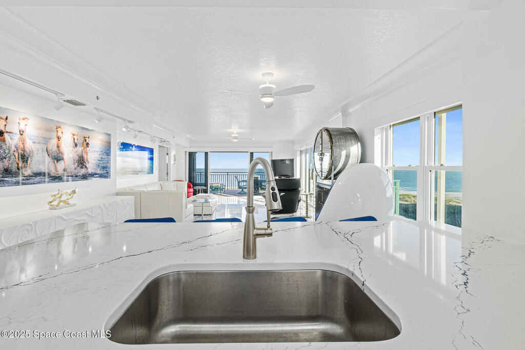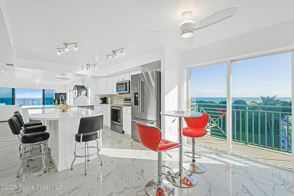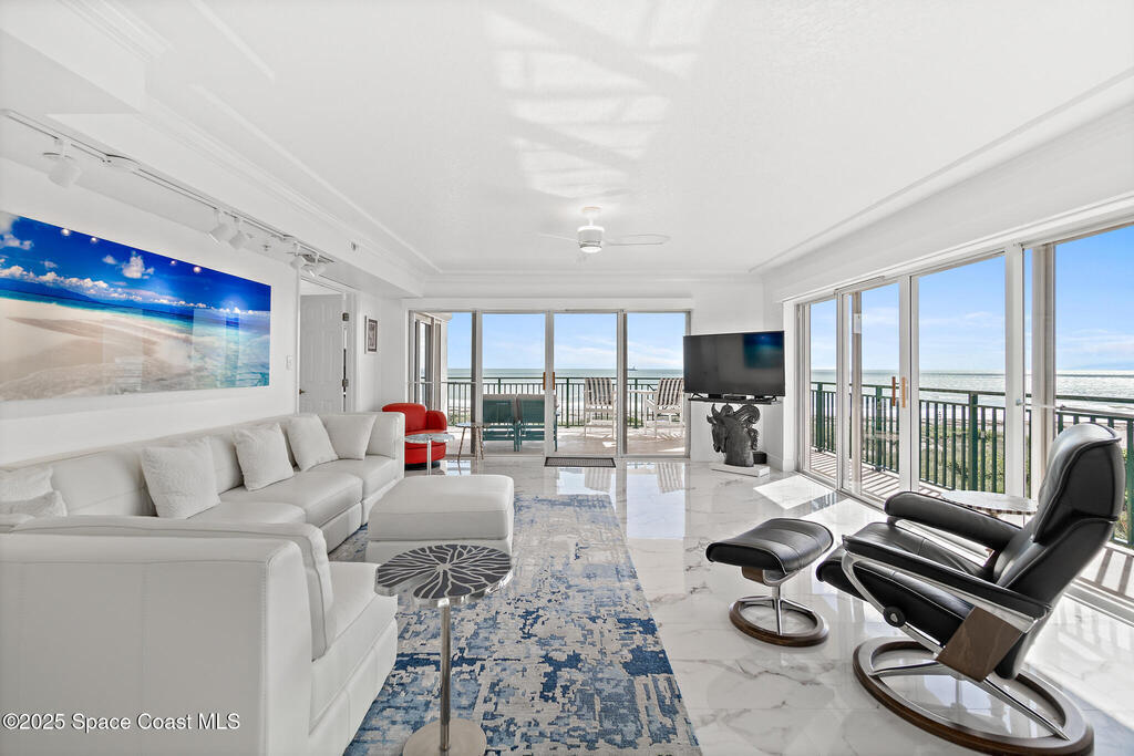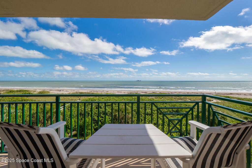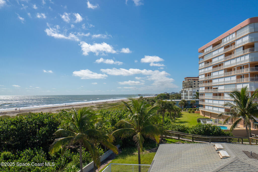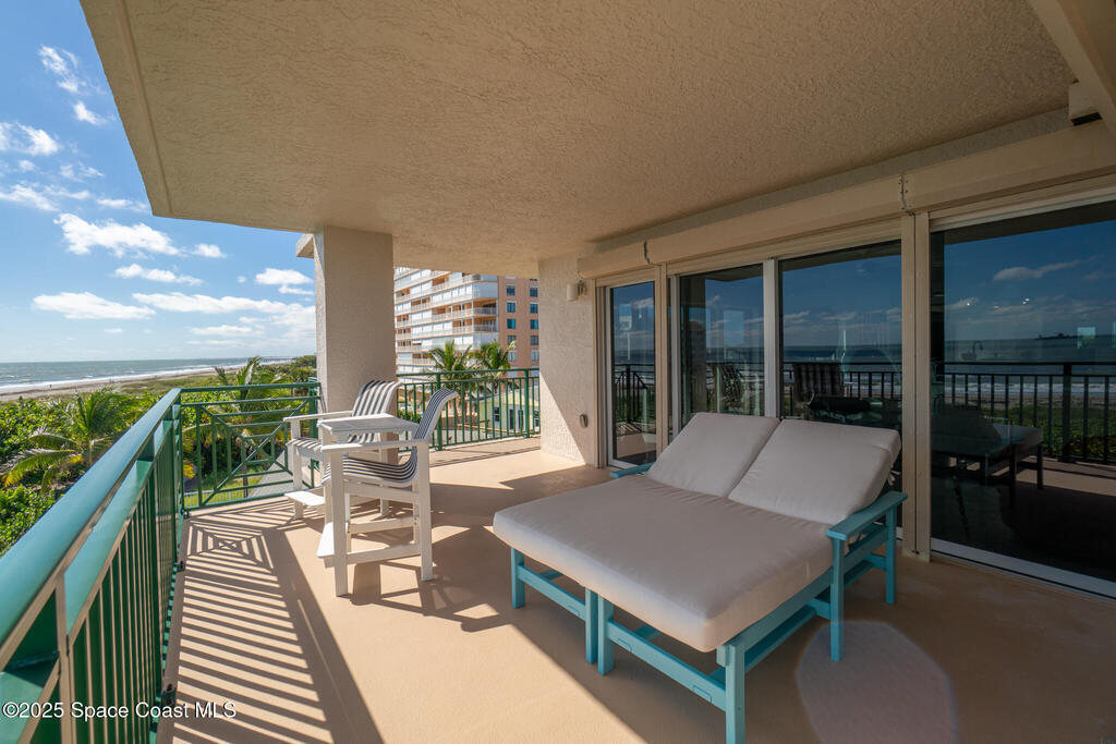 Step through the door and the rest of the world slips away. Inside every room feels intentional. The open living area flows effortlessly toward the ocean with walls of glass framing endless views. The kitchen was designed for both the cook and the conversationalist featuring stone countertops, a full pantry wall and stainless steel appliances. The primary suite is a pure retreat. Wake up to sunrise over the water, unwind in the double walk in shower and step into your private sauna to melt away the day. Two additional bedrooms each offer their own bath, privacy and comfort for guests and family. Every window is dressed in either plantation shutters or automated shades, giving you total control over the light and mood. Step outside and the balcony becomes your front row seat to the Space Coast's signature moments. The furnishings are negotiable, making this turn-key opportunity even more effortless. This is not just oceanfront living it's the Florida Lifestyle.