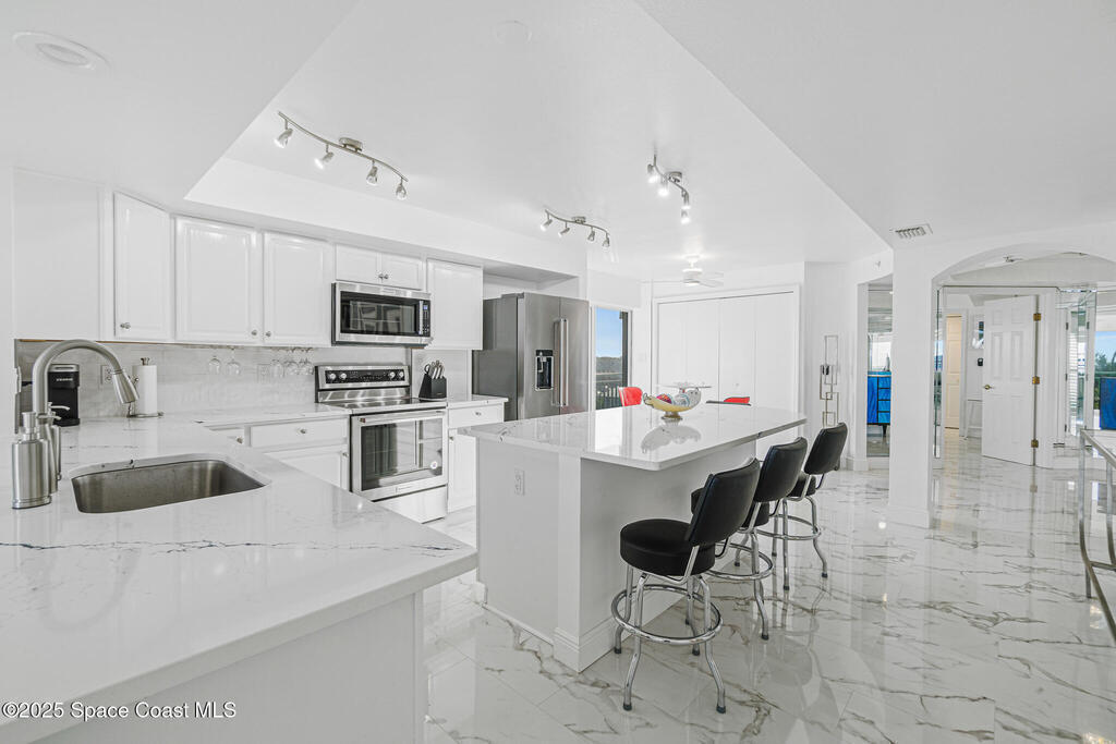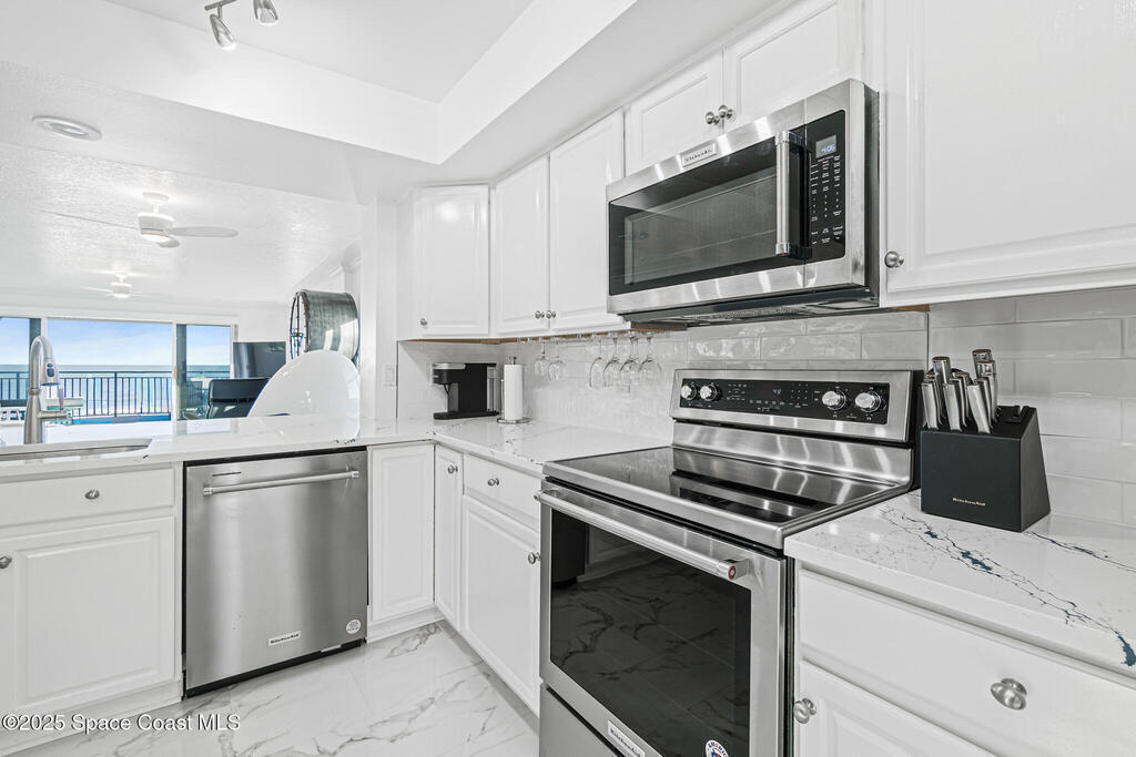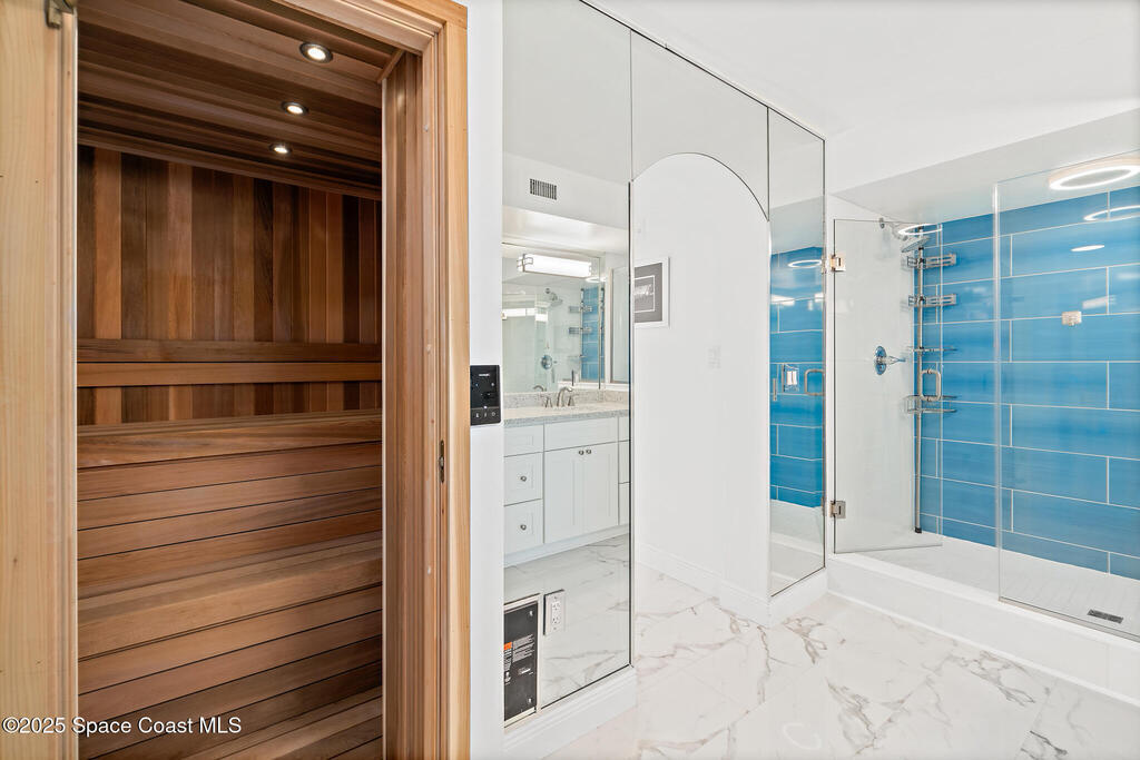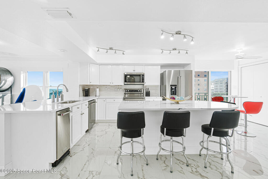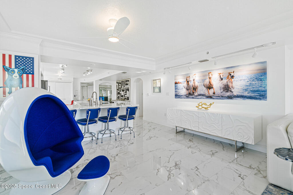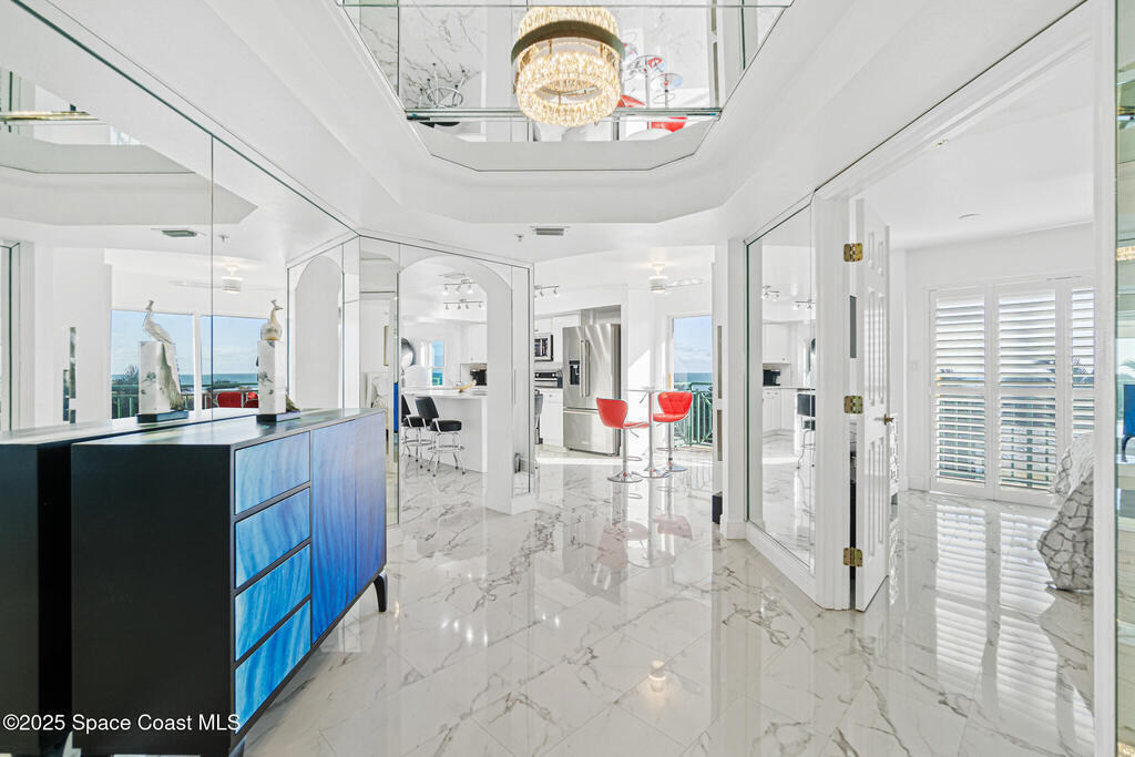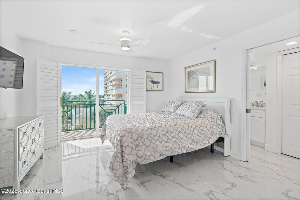 Step through the door and the rest of the world slips away. Inside every room feels intentional. The open living area flows effortlessly toward the ocean with walls of glass framing endless views. The kitchen was designed for both the cook and the conversationalist featuring stone countertops, a full pantry wall and stainless steel appliances. The primary suite is a pure retreat. Wake up to sunrise over the water, unwind in the double walk in shower and step into your private sauna to melt away the day. Two additional bedrooms each offer their own bath, privacy and comfort for guests and family. Every window is dressed in either plantation shutters or automated shades, giving you total control over the light and mood. Step outside and the balcony becomes your front row seat to the Space Coast's signature moments. The furnishings are negotiable, making this turn-key opportunity even more effortless. This is not just oceanfront living it's the Florida Lifestyle.