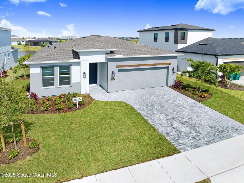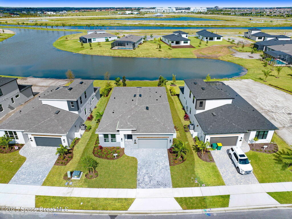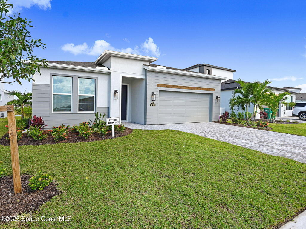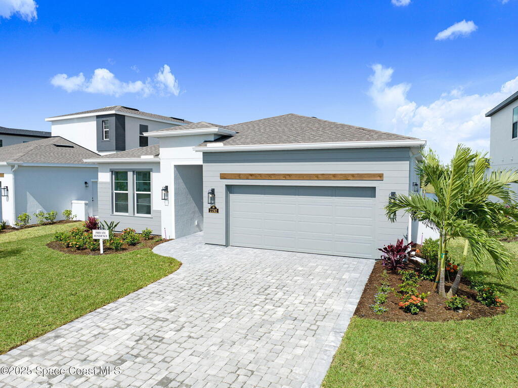 2025 Viera Built home in Crossmolina community with plenty space for a pool. This modern 3-bedroom, 3-bathroom residence includes a dedicated flex room/office, & tiles throughout. The bright, open floor plan flows seamlessly, highlighting a stunning kitchen complete w/quartz countertops, upgraded hardware, a large walk-in pantry, and a cafe area. The great room is illuminated by 6 recessed wafer LED fixtures. Retreat to the spacious main bedroom, which features an oversized walk-in closet. Built with peace of mind, the home boasts impact-resistant windows, full smart-home features, transferable 2-year builder plus 10-year structural warranty. As an owner in Crossmolina, you'll have access to a future community clubhouse and pool. You also have the option (not required!) to join the amenities at Addison Village. The home's prime location puts you just minutes from the new Publix & Costco, as well as The Avenue shops, dog parks, the Brevard Zoo, and a variety of dining & golfing options