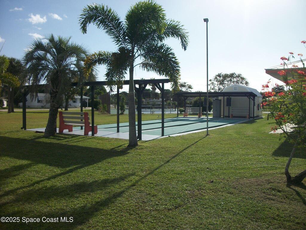 Super charming manufactured home in a tranquil 55 plus community located close to everything. This home has an enclosed front porch with vinyl windows which are a really big plus to catch a nice cross breeze. Laminate floors throughout for easy maintenance as well a huge kitchen w/loads of counter and storage space. Dining area is cozy with view of the kitchen and a living room area that has an electric heater in console for those nippy nights. Master bedroom is generously sized with a beautiful master bathroom that has a shower and a nice size master closet. This one car carport is oversized and can accommodate three vehicles. The utility room/laundry area is large and great for additional storage. Fenced in big back yard that has a canal where you can see ducks, turtles and even fish. HOA Membership is voluntary ( $45 monthly ) but has a one time membership fee if you so choose of $1500 that will give you access to the pool, tennis courts, shuffleboard and clubhouse.