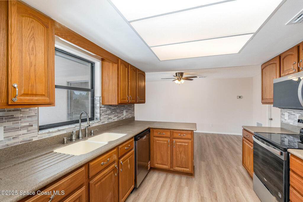 Beautiful 3-bedroom, 2-bath pool home with 2-car garage in a highly desirable neighborhood--NO HOA! Enjoy great curb appeal and a fresh look with new interior and exterior paint. Inside, you'll love the brand-new stainless steel appliances, new water heater, and luxury vinyl plank flooring throughout. The split floor plan offers privacy, with a spacious master suite featuring a walk-in closet and updated bath. The guest bath includes a tub and shower, both bathrooms tastefully renovated. Step outside to a large screened-in patio overlooking your fenced backyard and sparkling pool with a new motor and timer--perfect for relaxing or entertaining. Conveniently located near shopping, dining, and less than 20 minutes to the beach. Move-in ready and waiting for you!
