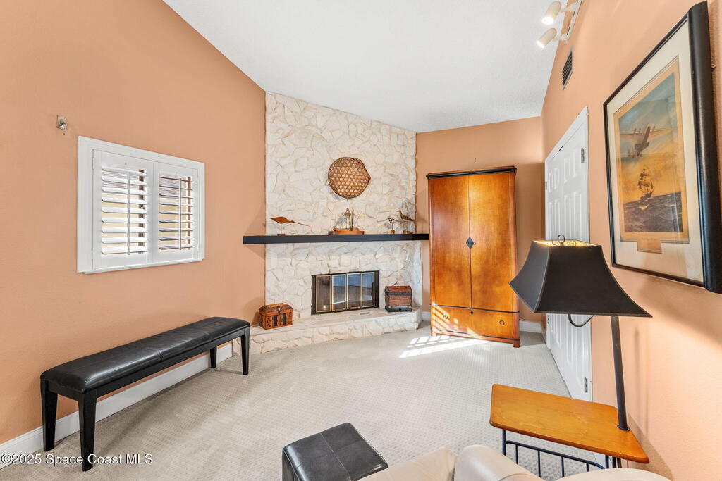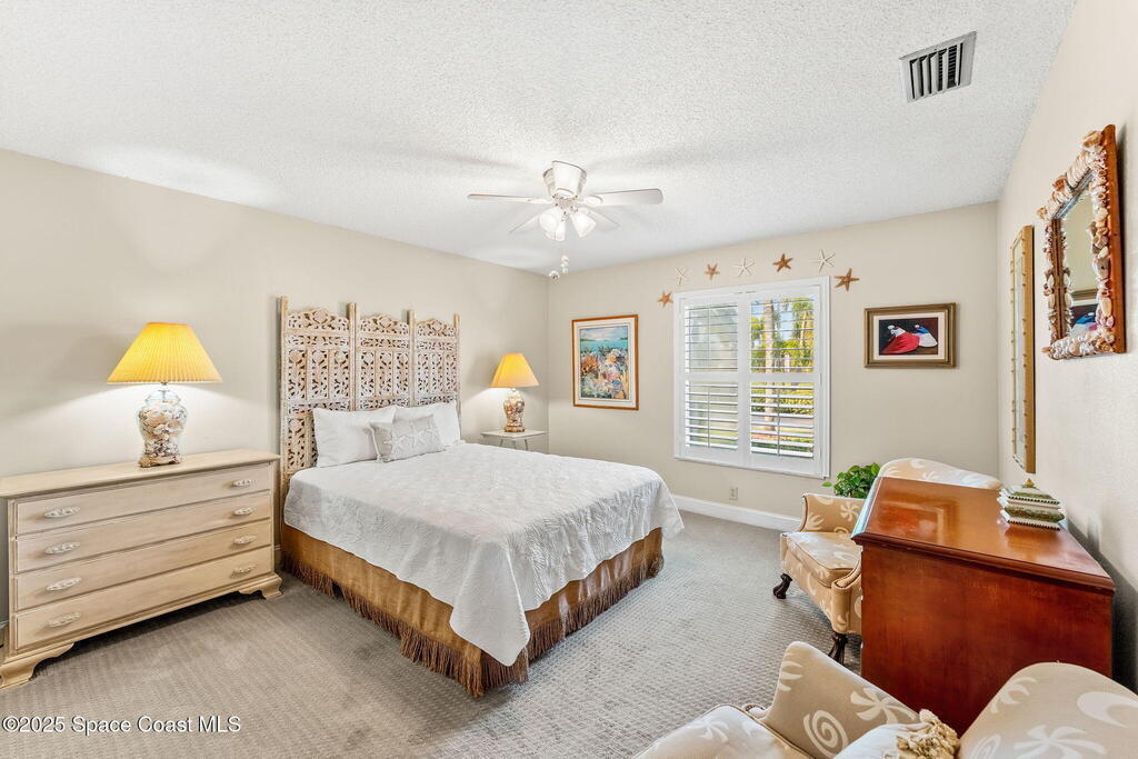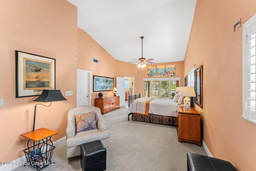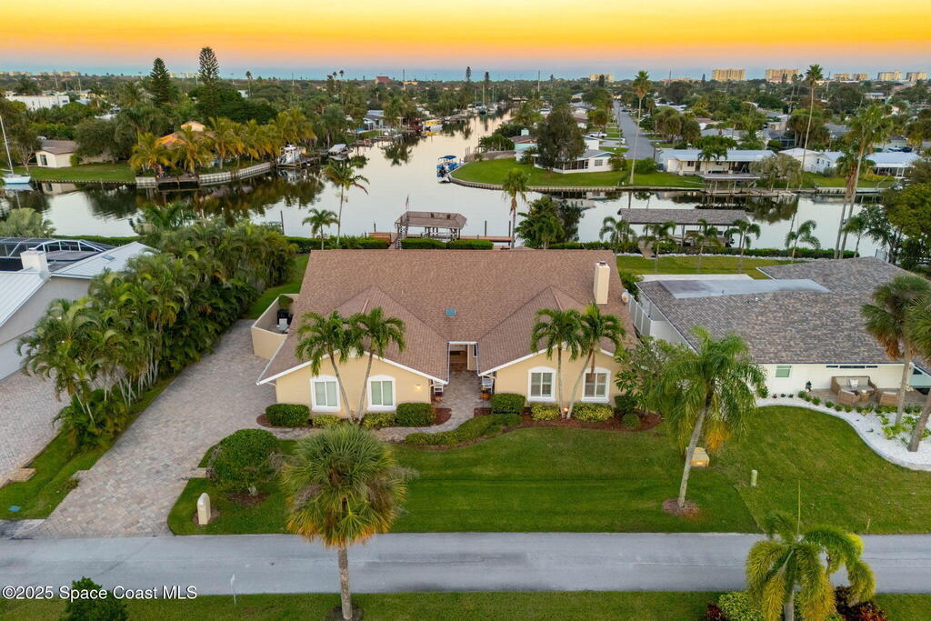 A rare waterfront opportunity on the Grand Canal, this 4 bed, 2.5 bath Tortoise Island home offers 2,981 sq ft of single-level living with panoramic canal views from nearly every room. A 57 ft dock on deep water invites boating, kayaking & sunset watching right from your backyard. Inside, tile flooring flows throughout, and the primary suite features a wood-burning fireplace, oversized walk-in closet & private screened porch overlooking the water. The expansive yard has room for a pool, while updates include 2022 storm shutters, 2019 windows, impact glass on four front windows, a manual roll-down shutter on the front door & three electric shutters plus one panel window in the family room. Tortoise Island residents enjoy resort-style amenities including tennis courts, boat ramp, clubhouse, pool, private docks, fitness center, playground & sauna, all within one of Satellite Beach's most desirable waterfront communities.