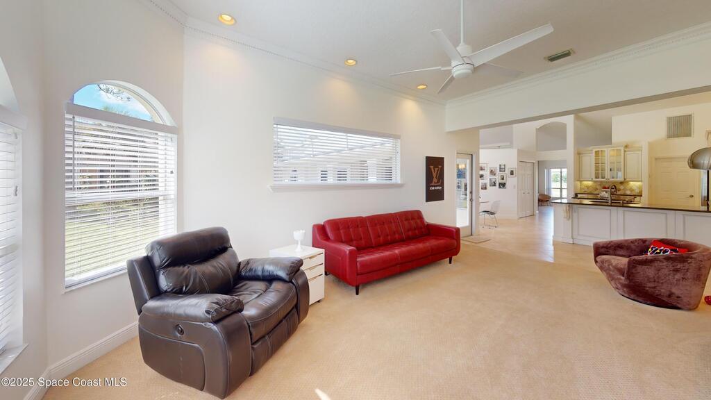 Reduced!!! Gorgeous-Executive Style 4 Bedroom Home In One of Brevard's Most Prestigious Subdivisions. A Fortunate and Discriminating Buyer Will Marvel At The Home's Superior Design, Layout and Appointments That Blend Formal and Casual Living Spaces Perfectly! Features Include An Impressive Entryway With Leaded Glass Door and Sidelights, Raised/Vaulted Ceilings, Clerestory Windows, Crown Molding; Gourmet Kitchen With Island, Breakfast Bar, and Breakfast Nook That Overlook An Inviting Large Screened Patio Area and Private Backyard. A Sizable Master Suite Features Abundant Storage/Built-Ins, A Luxurious Bath With Jet Tub and Separate Shower. This Home Also Features A Newer Roof (2023) and New A/C System (2025); Water Heater (2020). Location Affords Convenient Access To I-95, Regional Shopping, Schools, Library and Major Employment: Northrop-Grumman, L3Harris, Melb.-Orlando Int'l Airport. Just Minutes Away From The Indian River Intracoastal Waterway and Beaches. Impeccably Maintained!