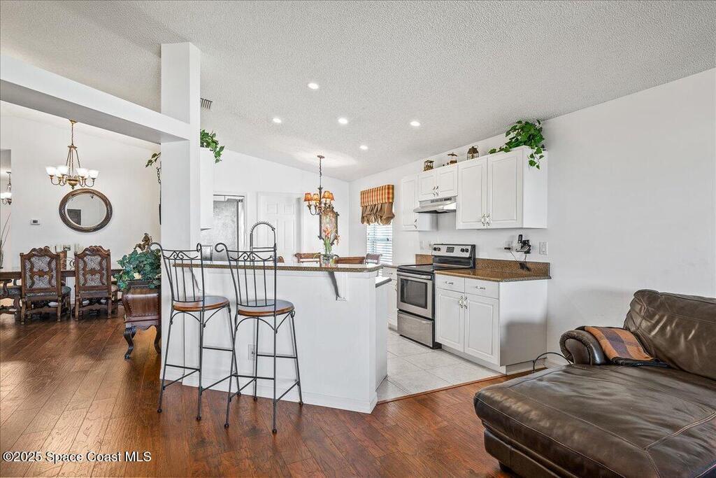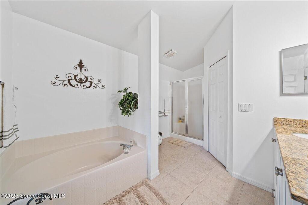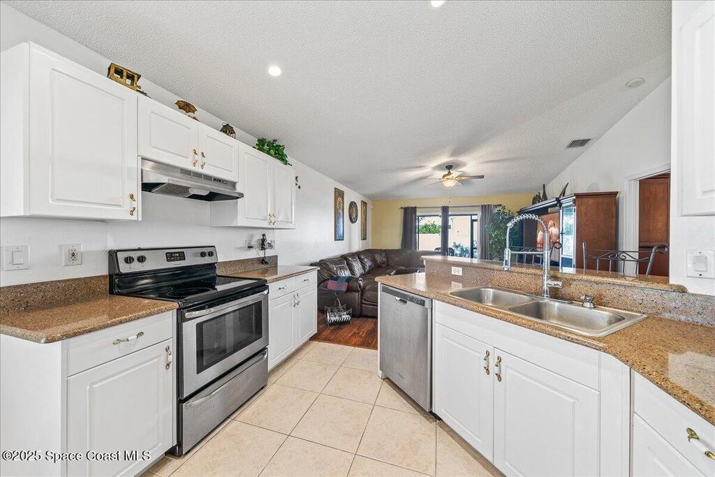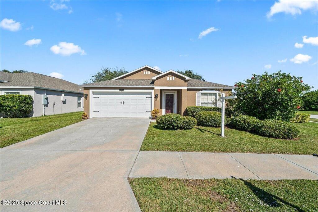 Discover this spacious 4 bedroom, 2 bathroom, concrete block home in the desirable Bayhill at Viera East! Featuring an open floor plan, this property includes an indoor laundry room, a screened lanai, Quartz & Granite countertops, & BRAND NEW ELECTRIC RANGE, WASHER & DRYER. Enjoy laminate wood flooring throughout & porcelain tile flooring in the kitchen, foyer & bathrooms. The spacious Primary suite offers a generous walk-in closet, double sinks, a walk-in shower, & a garden tub for relaxation! For peace of mind, storm shutters are present for all openings! Bayhill at Viera East is ideally situated within walking distance of shopping & dining options! With I-95 just 5 minutes away, the beach is a quick 30 minute drive, Port Canaveral is 35 minutes, & both Orlando International Airport & Disney World are about an hour away! Neighborhood amenities include a pool, playground, & basketball courts! This charming family home is located in a top-rated school zone & is ready for new owners!