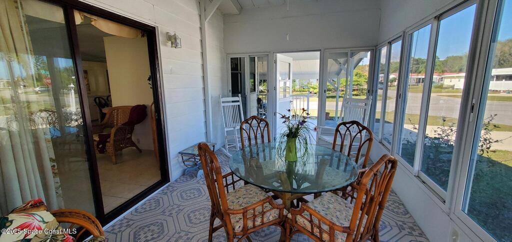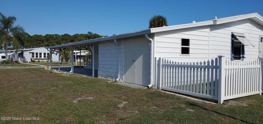 Fully furnished spacious home has many updates. 2022-new stainless frig, range, dish washer built-in microwave...new washer. -.new commodes. 2005- new roof, new carport, new FL room. 2009-New water filter. 2018 extended utility shed. 2019- Fenced yard in rear. 2016-17 - laminate flooring in both bedrooms. This home is totally anchored down with metal strapping. The 3-sided enclosed & screened front FL room provides a great area for relaxing. There is a large utility shed has been enlarged and has double doors allowing room to accommodate your golf cart. Don' miss out this great home.