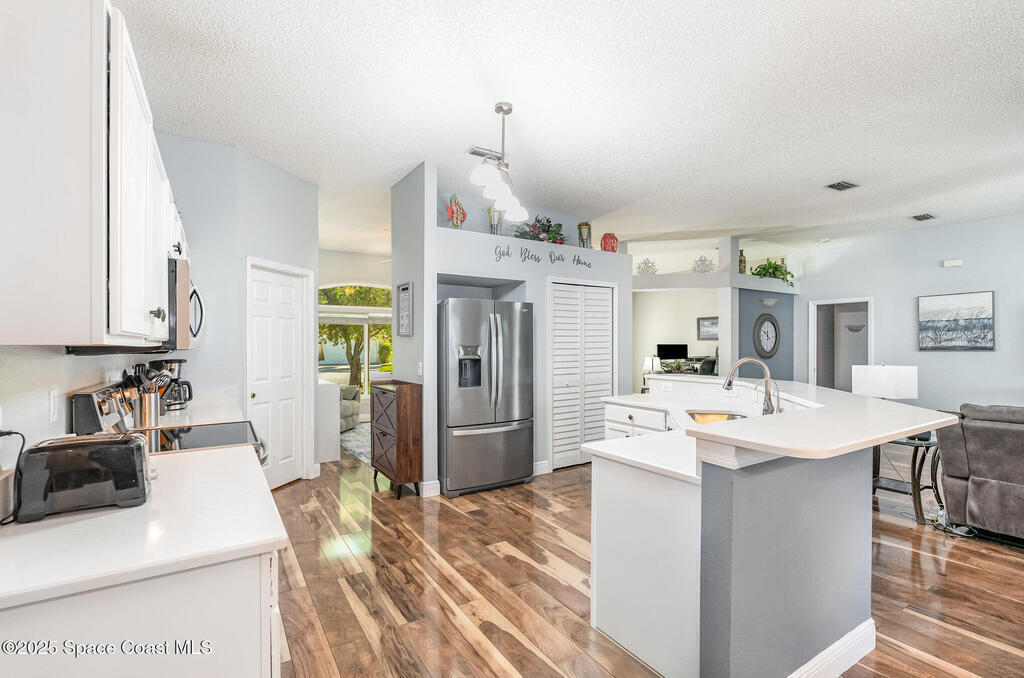 This beautifully updated 4-bedroom, 2-bath pool home offers over 2,200 sq. ft. of living space, plus a versatile flex room perfect for a home office, gym, or playroom. Step inside to find a bright, open layout featuring a freshly updated kitchen with brand-new quartz countertops, stainless steel appliances, and plenty of cabinet space. The spacious owner's suite includes a private poolside entrance and a stunning remodeled bathroom with an oversized walk-in shower--your own personal retreat. Enjoy Florida living at its best in the screened-in pool area, surrounded by a privacy fence for total relaxation and entertainment. Located in a highly desirable Suntree neighborhood, residents enjoy low HOA fees and access to community amenities including a basketball court and playground. Close to top-rated schools, shopping, dining, and just a short drive to the beaches, this home truly has it all.