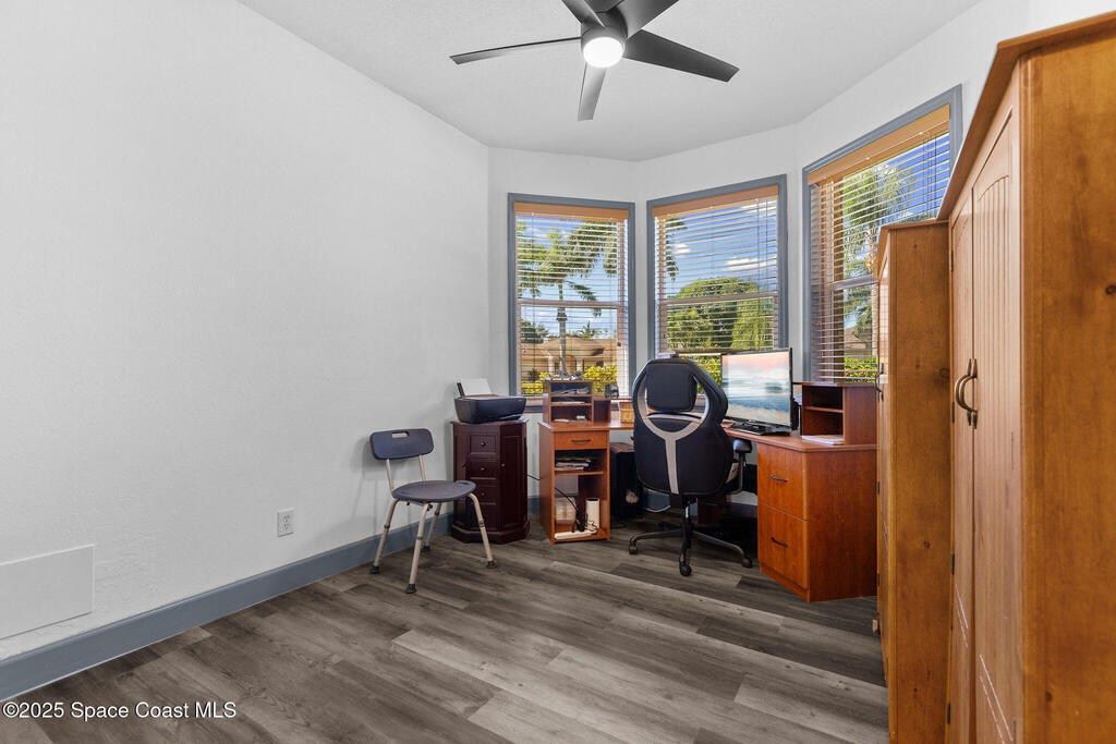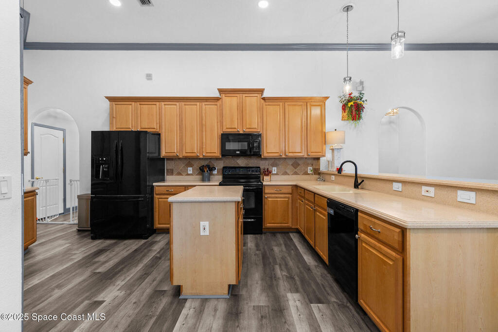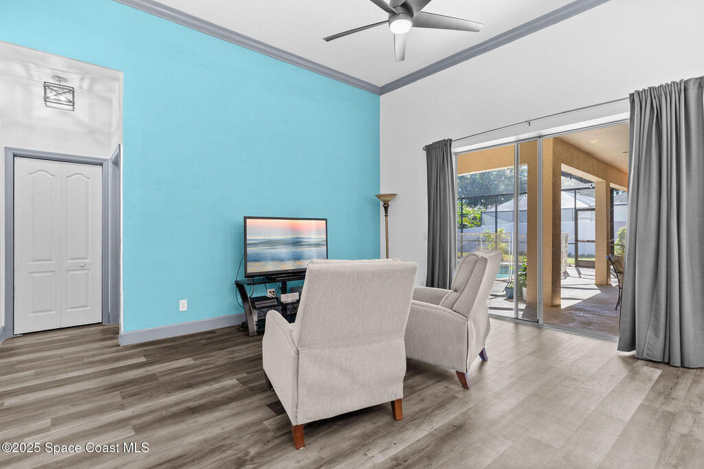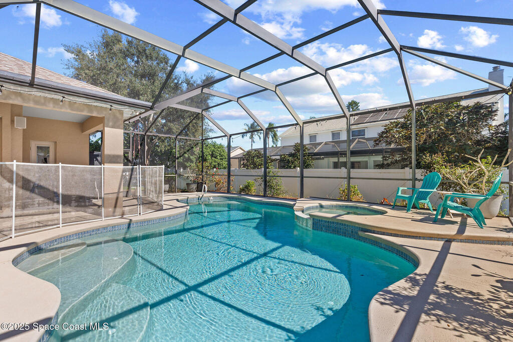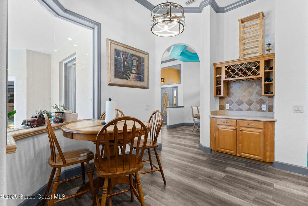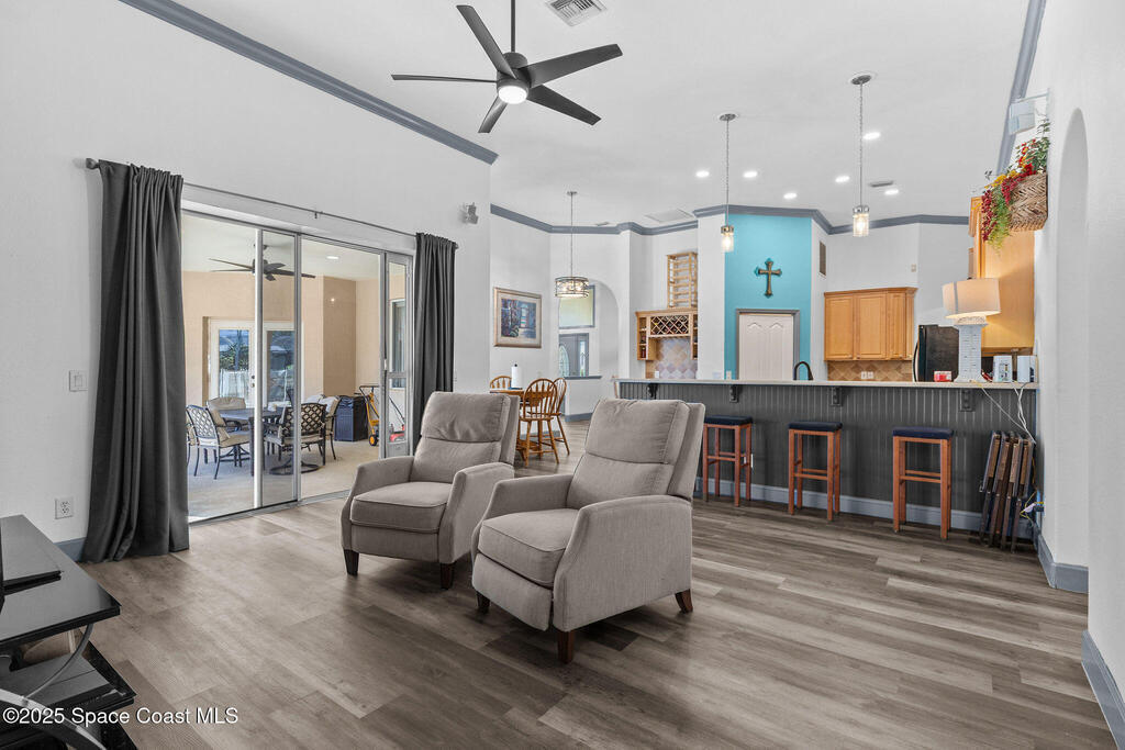 Spacious 5-Bedroom Home with Office and 3-Car Garage in South Merritt Island - Well maintained 5-bedroom, 4-bath home offers 2,764 sq. ft. of comfortable living space. Inside you'll find tall ceilings, an open-concept layout with a split floor plan, and new vinyl flooring throughout, creating a light, modern, and cohesive feel. The kitchen is the centerpiece of the home, equipped with a large island, expansive countertop space, and dedicated coffee, breakfast, and wine bar areas--ideal for both daily living and entertaining. The primary suite features: A private office/sitting room, Two walk-in closets and a spa-style bathroom Two guest bedrooms are connected by a Jack & Jill bathroom, while the upstairs suite is perfect for guests, extended family, or a quiet hobby space. The 3-car garage offers plenty of room for vehicles, storage, or a workshop. Additional features include a 2019 roof, security system, crown molding, built-in pest control system, and easy attic access for storage.