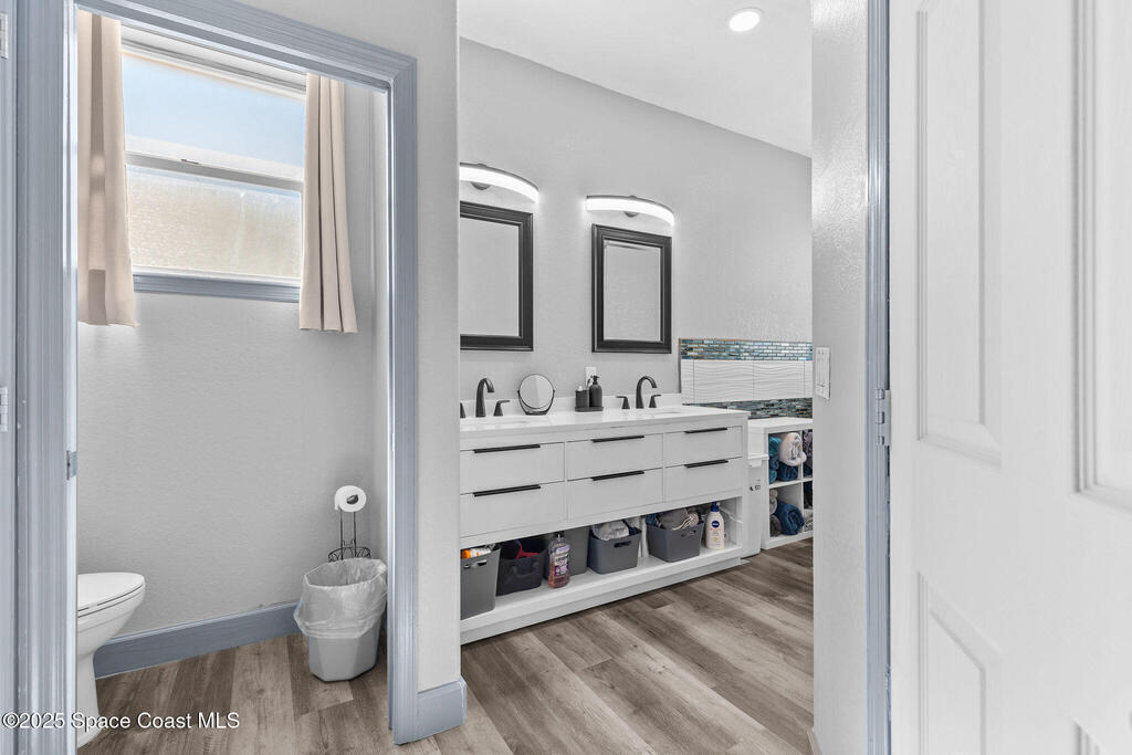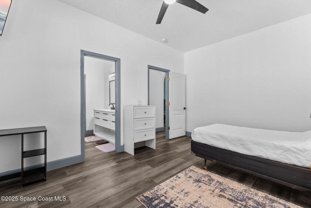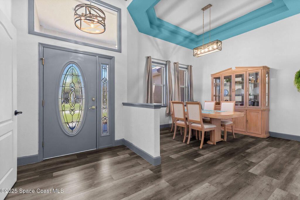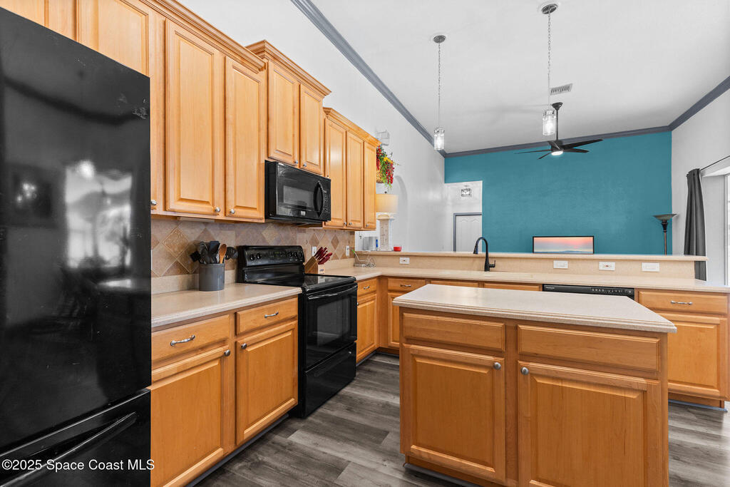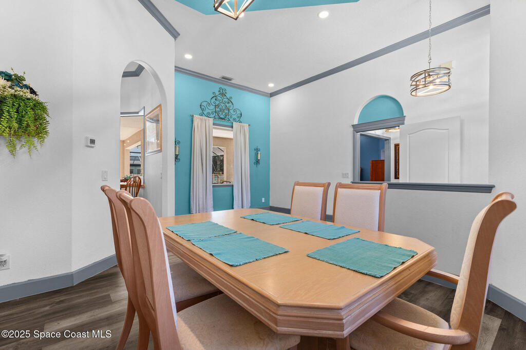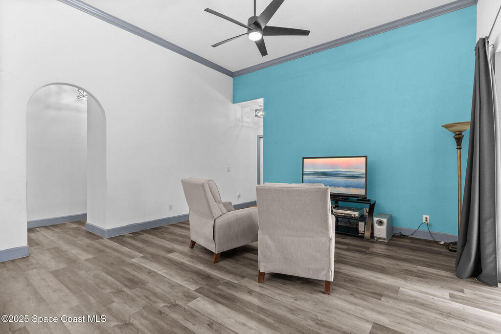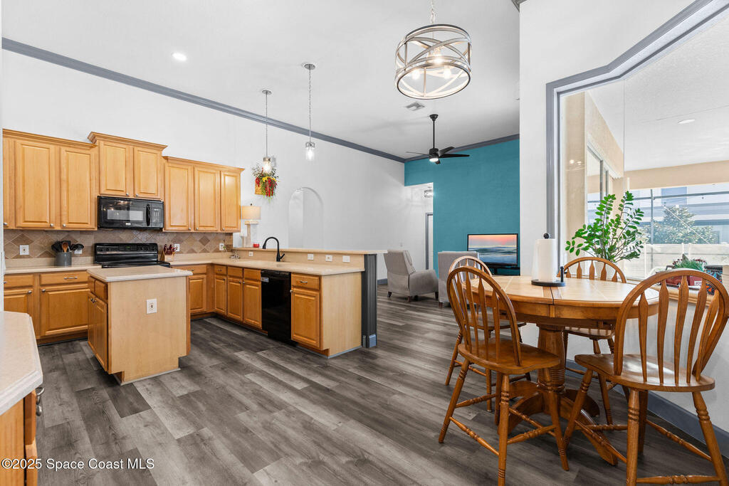 Spacious 5-Bedroom Home with Office and 3-Car Garage in South Merritt Island - Well maintained 5-bedroom, 4-bath home offers 2,764 sq. ft. of comfortable living space. Inside you'll find tall ceilings, an open-concept layout with a split floor plan, and new vinyl flooring throughout, creating a light, modern, and cohesive feel. The kitchen is the centerpiece of the home, equipped with a large island, expansive countertop space, and dedicated coffee, breakfast, and wine bar areas--ideal for both daily living and entertaining. The primary suite features: A private office/sitting room, Two walk-in closets and a spa-style bathroom Two guest bedrooms are connected by a Jack & Jill bathroom, while the upstairs suite is perfect for guests, extended family, or a quiet hobby space. The 3-car garage offers plenty of room for vehicles, storage, or a workshop. Additional features include a 2019 roof, security system, crown molding, built-in pest control system, and easy attic access for storage.