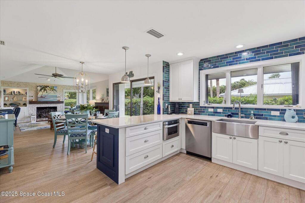 Thoughtfully designed 4BR/3BA coastal retreat where no detail is overlooked. Elegant white kitchen, custom cabinetry, and wood plank tile throughout. Saltwater pool, gas fireplace, and range, plus exterior gas line for grilling. Spacious fenced yard with new beautiful brown 30-year metal roof . Walk or golfcart to deeded beach access with private parking, lanais, showers, grill & tortoise habitat. Near Moorings Yacht & CC with rare Social Club Membership opportunity, skip the 2-3 year waiting list with purchase of home with club approval.