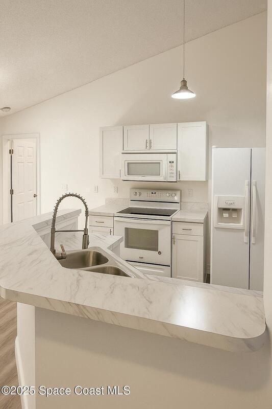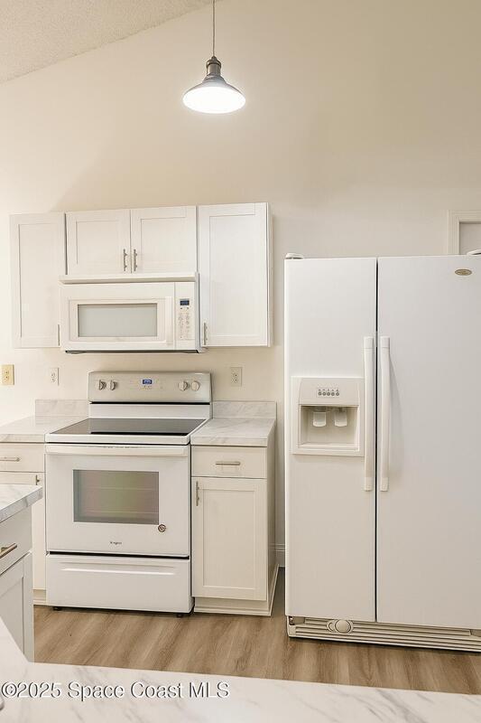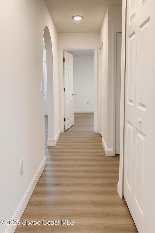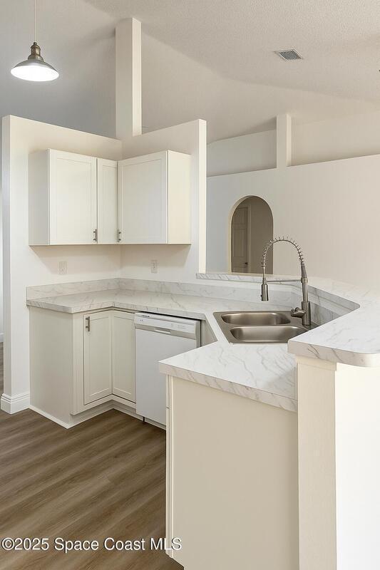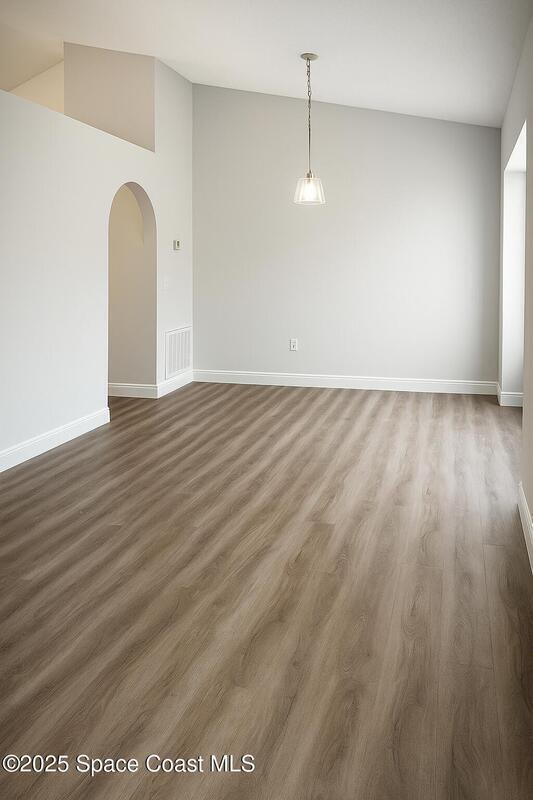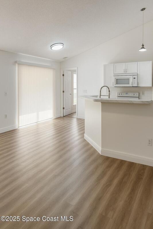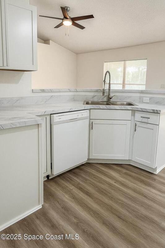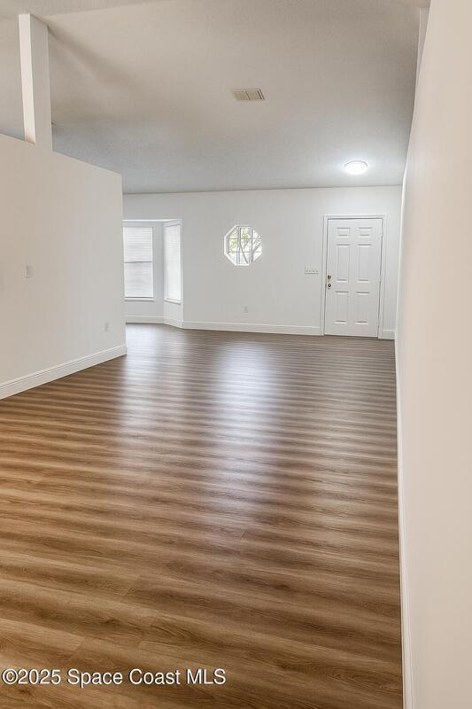 Seller will replace the roof. This beautifully updated 3-bedroom, 2-bath home offers 1,545 sq. ft. of bright, open living with brand-new kitchen cabinetry and modern laminate flooring throughout.Enjoy high vaulted ceilings, a spacious layout perfect for entertaining, and large windows that fill the home with natural light. The split-bedroom design offers privacy, while the master suite features a walk-in closet and private bath.Relax outdoors in the screened patio overlooking a peaceful backyard, perfect for Florida evenings. Conveniently located near schools, shopping, dining, and easy access to I-95, this home combines comfort, convenience, and style -- all in one move-in-ready package.