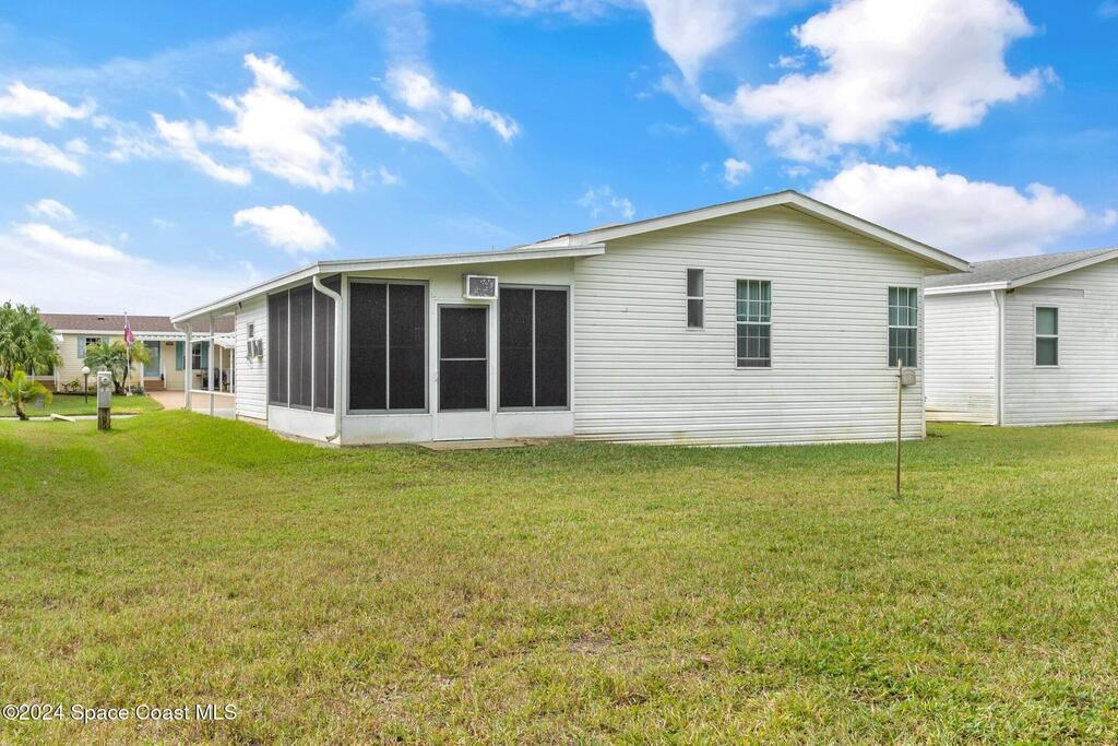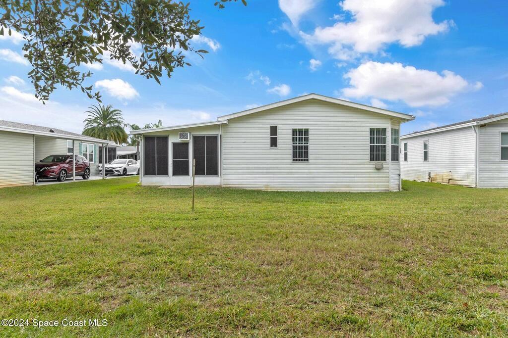 Look at this senior community where you own your land. This well maintained home the perfect place to retire. This home has a brand new roof,june 2025...This 2/2 home will be great for snowbirds or year round living.Watch rocket launches from home or sit on the back patio enjoying the wildlife. Your HOA dues cover cable,internet,lawncare and security.Community clubhouse has many activities,pickleball,tennis or shuffleboard.Close to beaches and shoppingDon't wait,you may be too late !