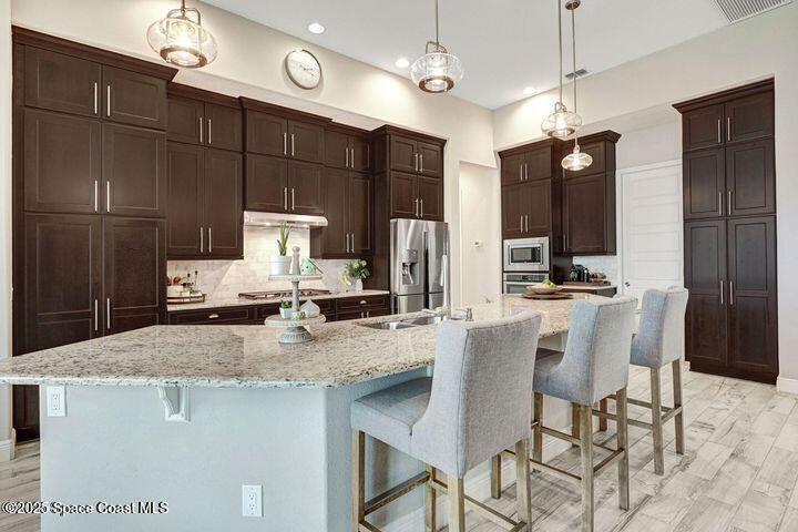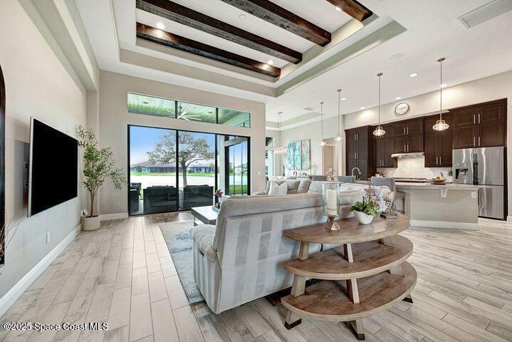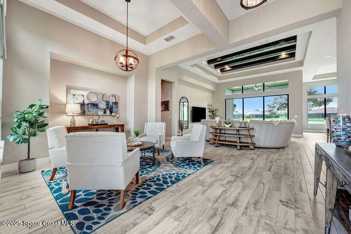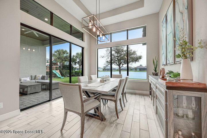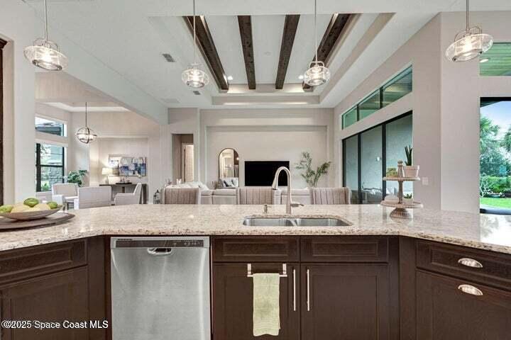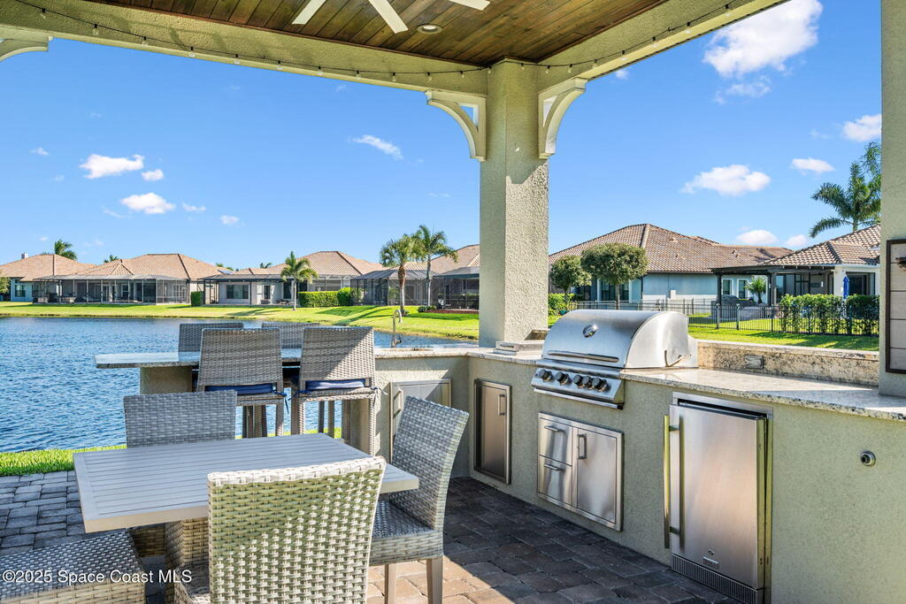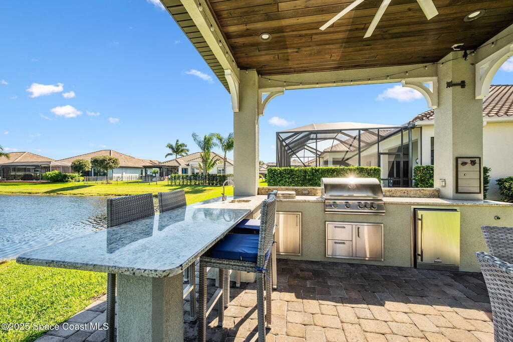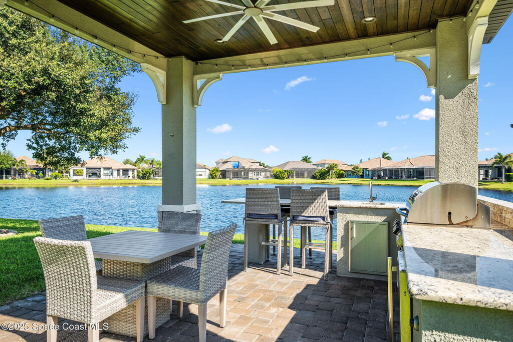 STUNNING, modern 4 BR/3BA/3 car garage LAKEFRONT luxury home with multiple sliders & windows to take in one of the best views in Suntree! Priced to sell fast -- the best value in St. Andrews Manor! Great Room floorplan features a gourmet kitchen with an extra spacious kitchen island, upgraded kitchen cabinets & stainless appliances. This home also features tile throughout the main living areas, plantation shutters & abundant windows and sliding doors to enjoy your tranquil lake views! JUST FRESHLY PAINTED bedrooms & bath! Recently updated guest bedroom closets & laundry room feature amazing, custom shelving & storage! Great Room features a tray ceiling with wood beams -- and this modern design feature extends to the patio & summer kitchen too, where the owners have added wood ceilings! The MUST SEE detached gazebo w/a matching tile roof, features a terrific summer kitchen with grill & extended granite counter tops, plus dining table - perfect for your family & entertaining!