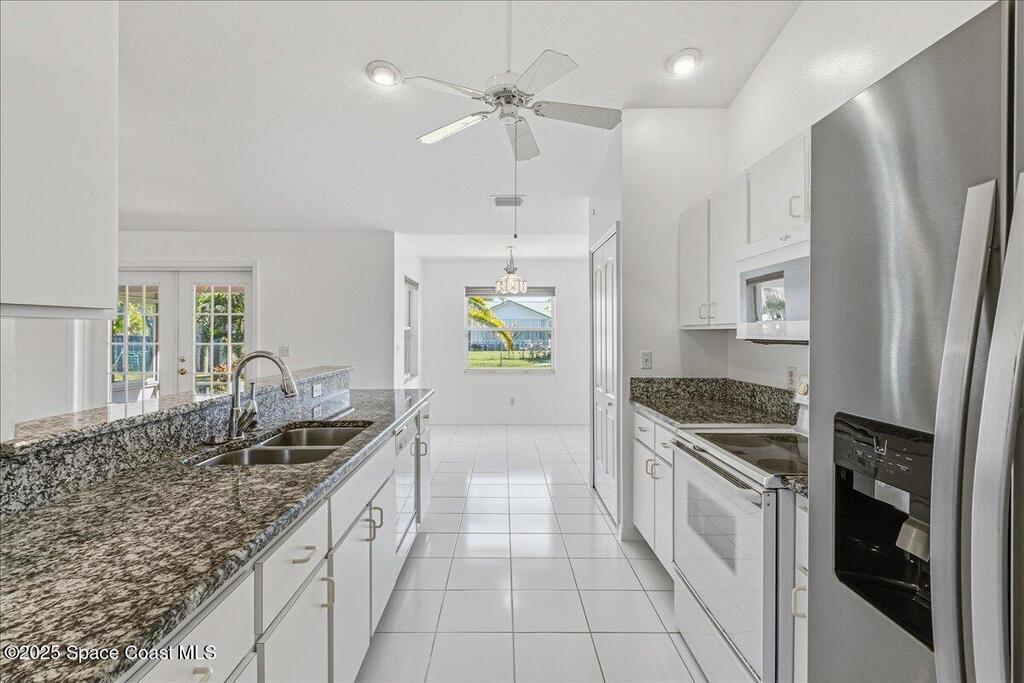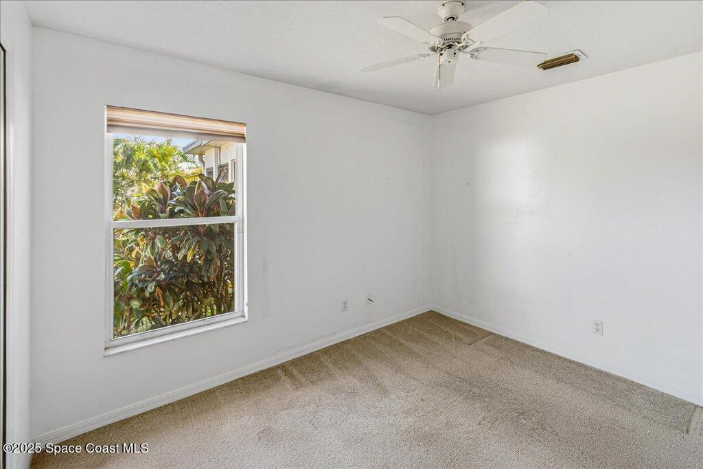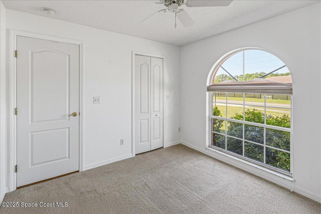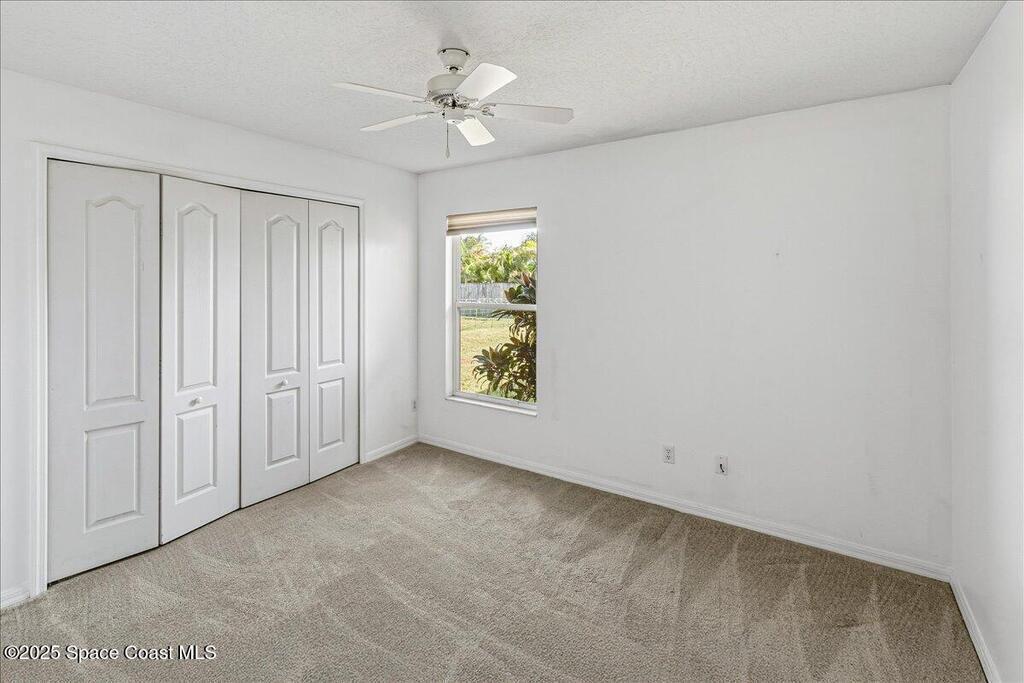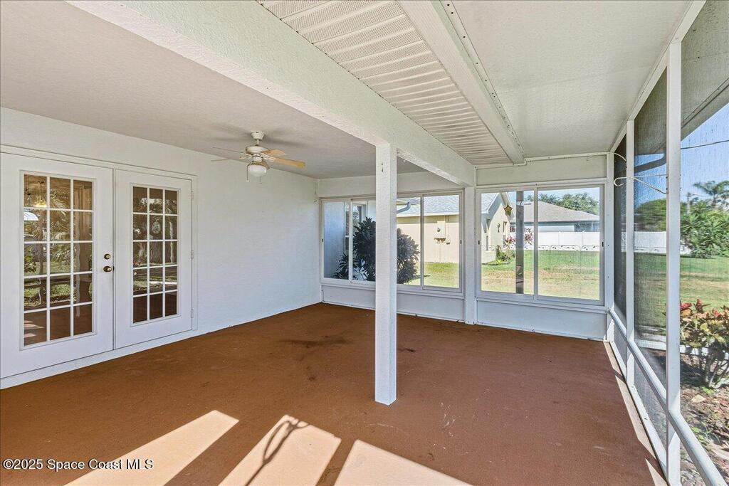 Welcome to this inviting Palm Bay home, featuring an open-concept living space with beautiful real granite in the kitchen and an effortless flow throughout. The bright breakfast nook provides a warm spot to start your day, while the primary bedroom offers generous space and soft, natural light. The primary bath includes both a walk-in shower and a relaxing soaking tub framed by an elegant arched window. A well-kept secondary bathroom continues the home's bright, fresh feel. Enjoy a spacious backyard with room to roam, complete with an electrically equipped shed. The screened porch offers a breezy place to unwind while overlooking the tropical greenery, and the in-unit laundry leads directly into the garage with removable sliding screen doors for added convenience. This well-maintained home blends comfort, functionality, and Florida living at its best.
