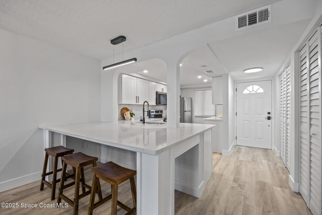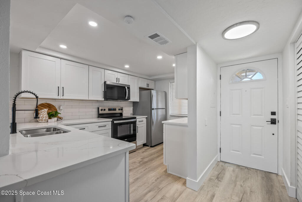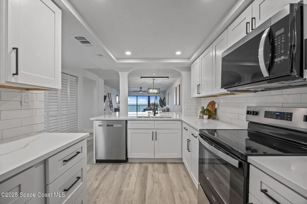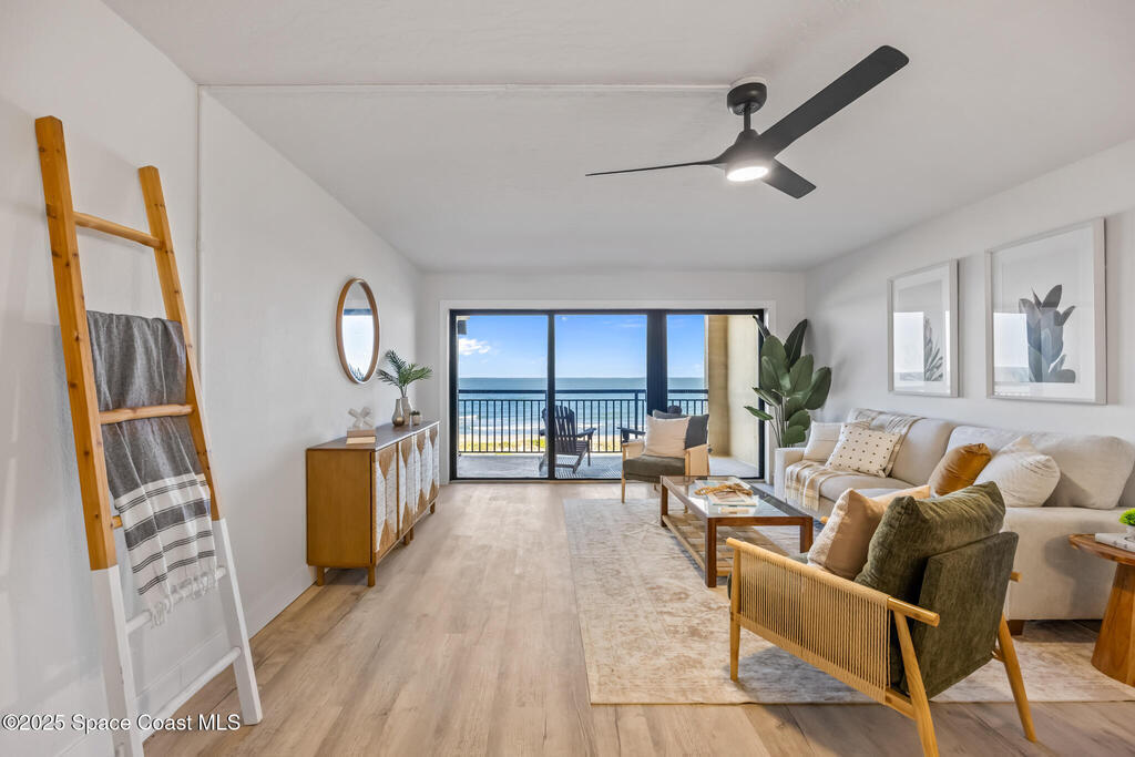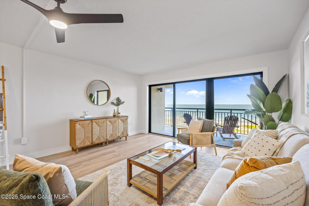 DIRECT OCEANFRONT WITH GARAGE. You're looking at a rare, worry-free opportunity with this 4th-story direct oceanfront condo in Cocoa Beach, offering exceptional value at this price point! The building has undergone a massive professional renewal where structural integrity is completed, including brand new balcony and stairwell rails, resurfaced common walkways and balconies, and new garage door panels, with the entire exterior currently being painted--and the best part is ALL ASSESSMENTS HAVE BEEN PAID UP FRONT, allowing you to enjoy a low HOA cost. Not only is the building impeccable, but the unit itself is fully updated with ALL IMPACT WINDOWS/DOORS, brand new flooring, kitchen, and bathrooms, plus essential mechanicals is new with a 2025 HVAC system, 2025 electrical panel, and new appliances, ensuring a truly turnkey experience; adding to the appeal are the flexible rules, including NO pet restrictions and only a 3-month rental restriction, low HOA Fees.