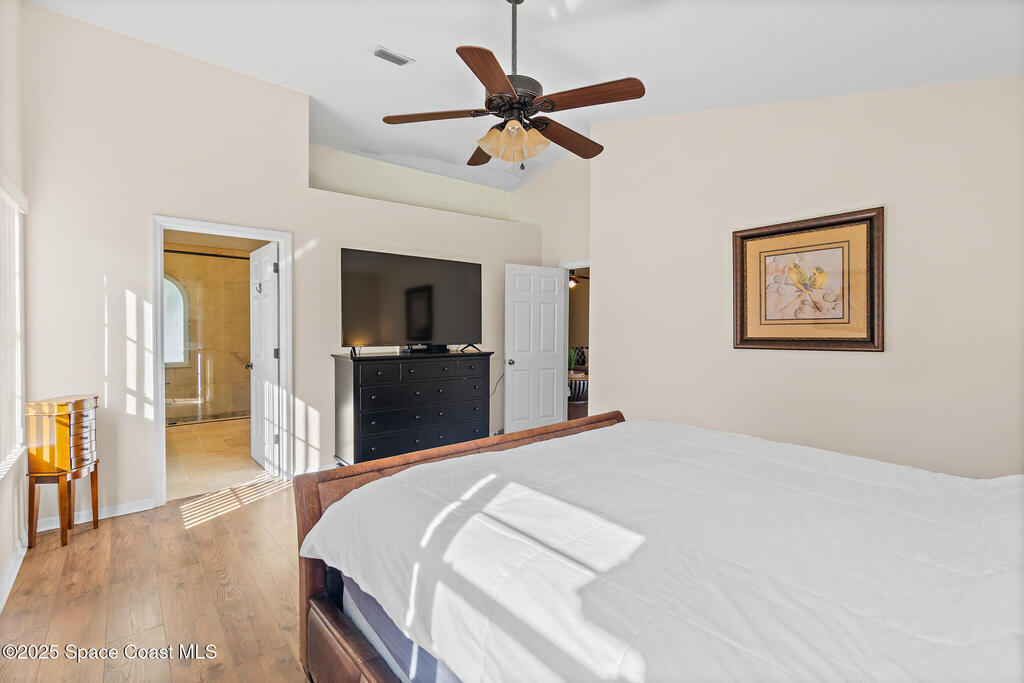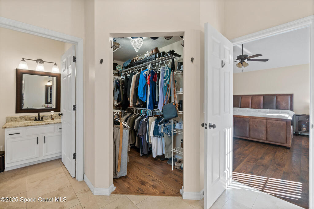 - Interior FeaturesBreakfast Bar, Ceiling Fan(s), His and Hers Closets, Open Floorplan, Primary Bathroom - Shower No Tub and Walk-In Closet(s)