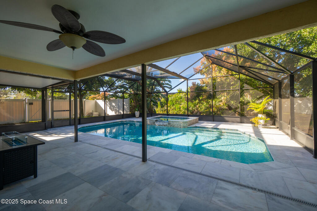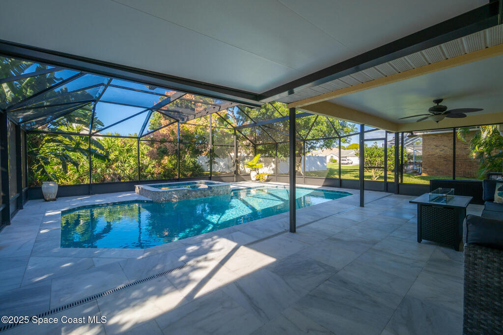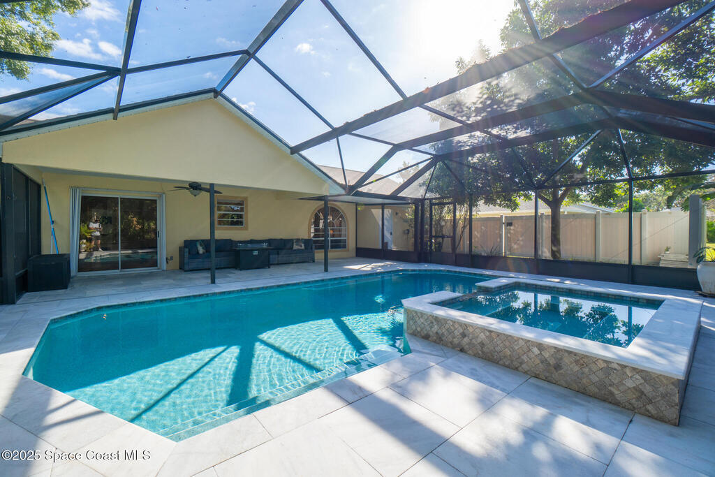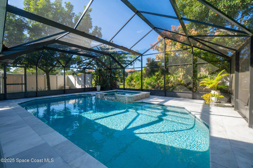 Stunning fully updated pool home in highly desirable Suntree community. This 3 bed 2 bath residence has been beautifully modernized from top to bottom featuring stylish finishes and quality craftmanship-truly move in ready. Enjoy peace of mind with a NEW pool, NEW AC, NEW paver drive, NEW appliances, NEW hot water heater. Step inside to a bright open floor plan w/ spacious living and dining areas-perfect for gatherings and comfortable everyday living. The kitchen boasts a functional layout ideal for cooking and entertaining. The private primary suite with gorgeous bath and 2 additional bedrooms provide versatility for family, guests or home office. Outside, your backyard oasis awaits - a beautiful sparkling pool with large spa, generous marble tiled patio space and a mature avocado tree. Located in a quiet, well-kept neighborhood with low-fee HOA, close to shopping, dining, A-rated schools with easy access to I-95. This exceptional home blends stylish updates, comfort and convenience