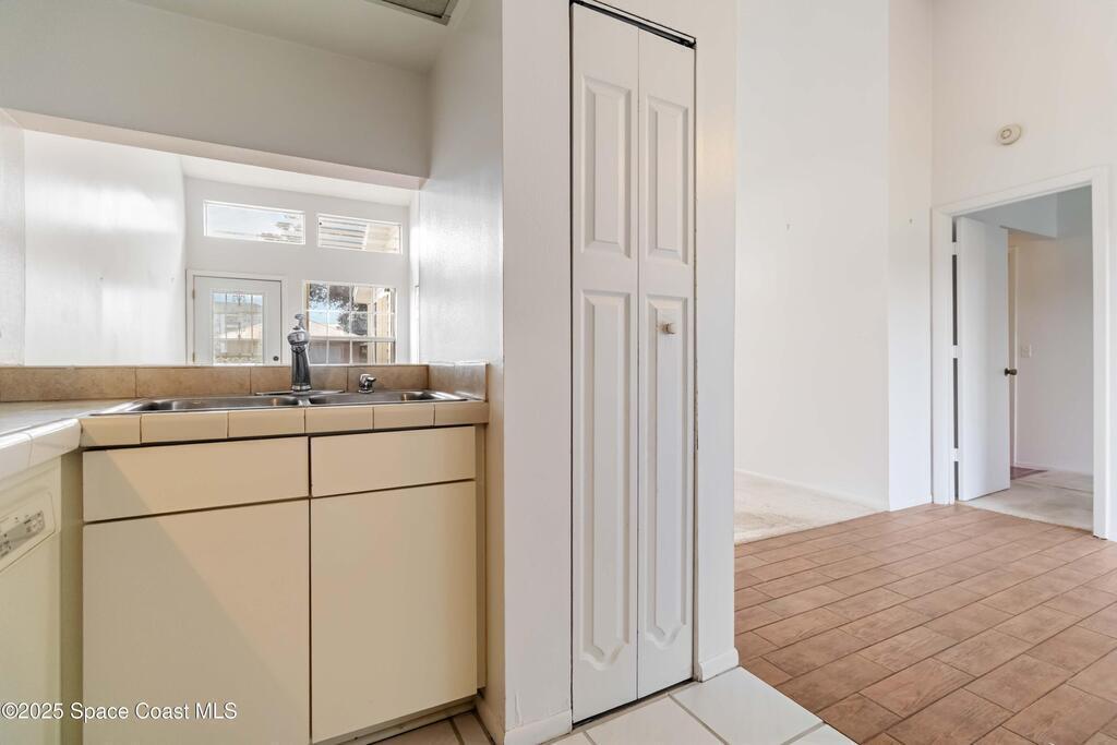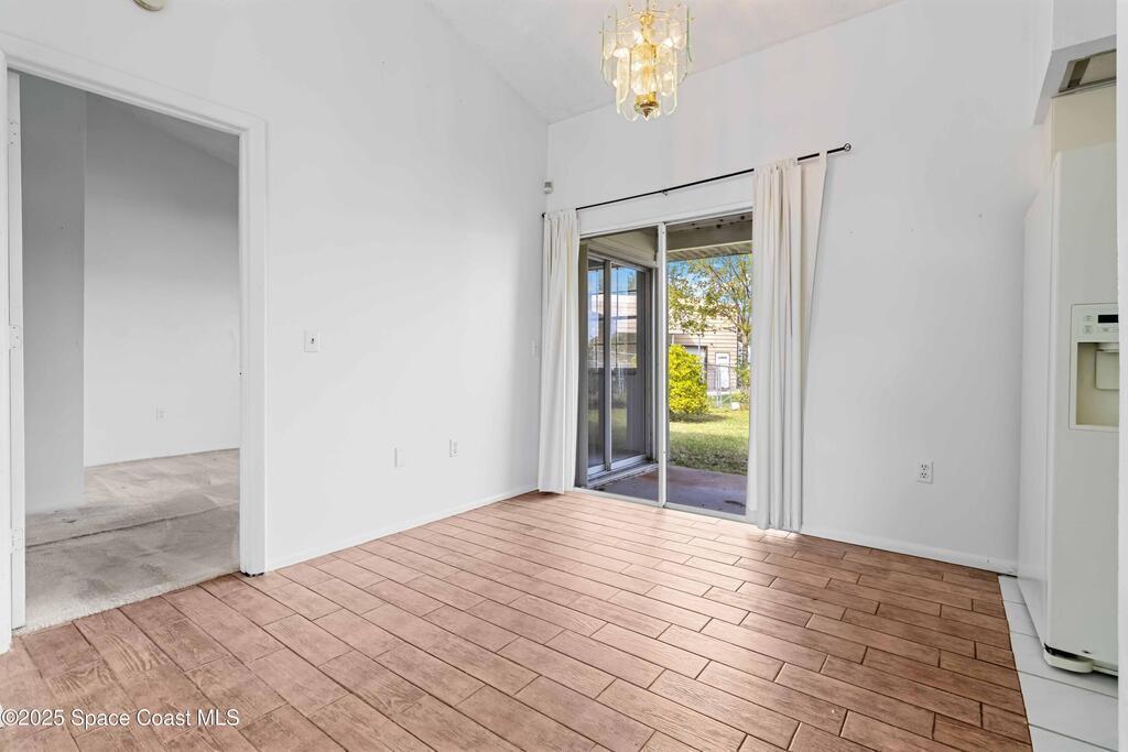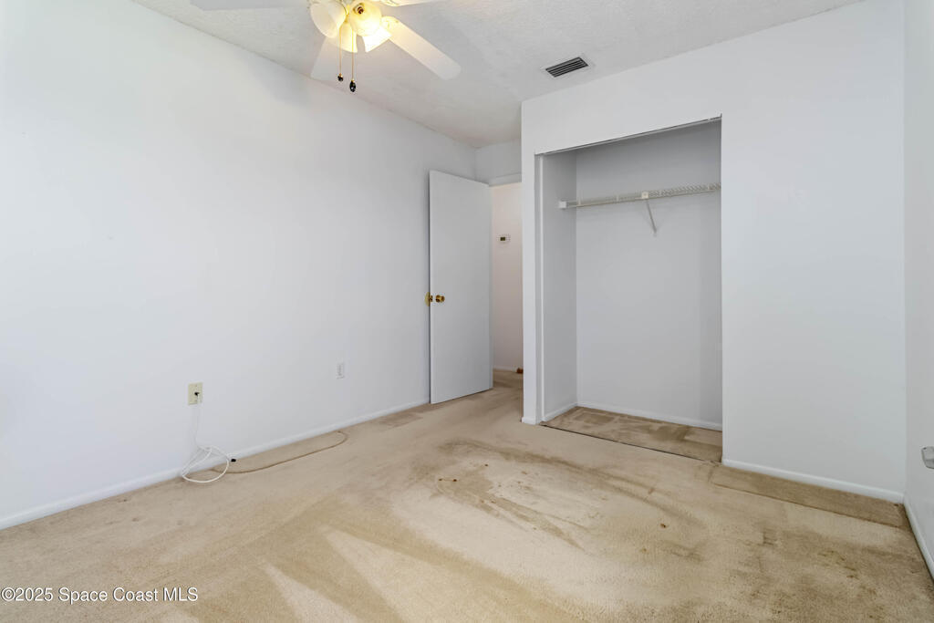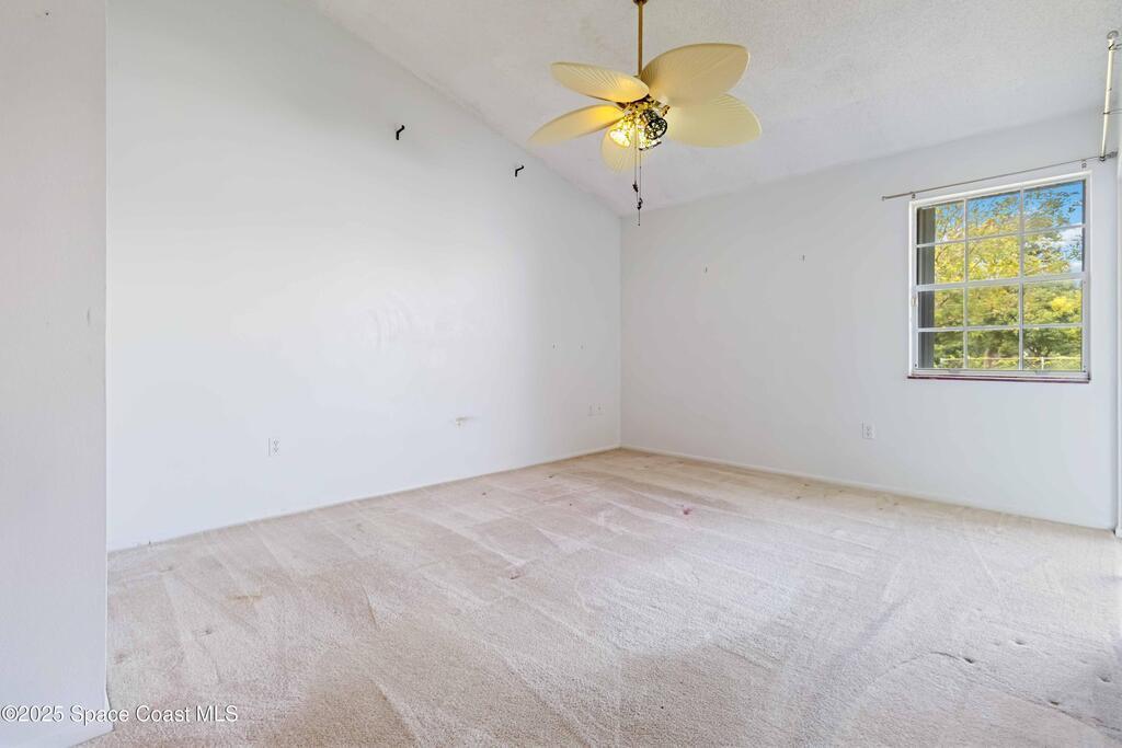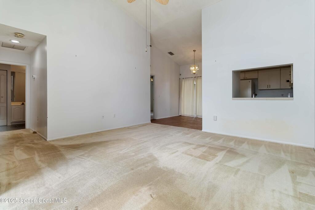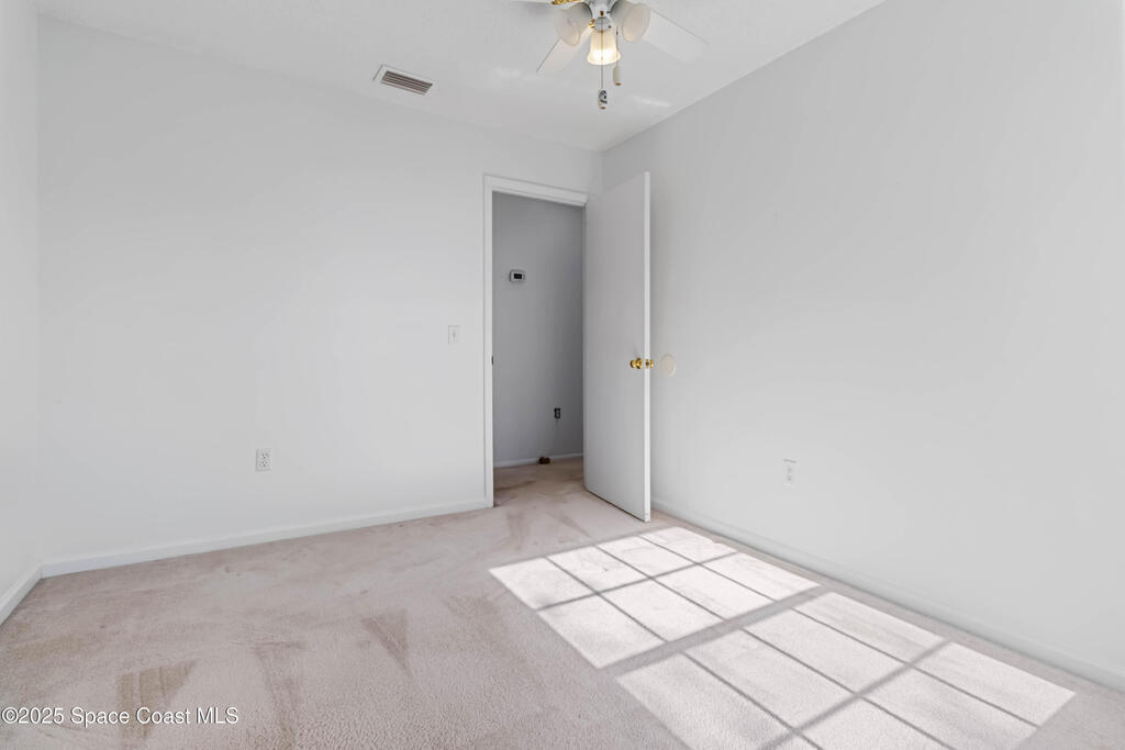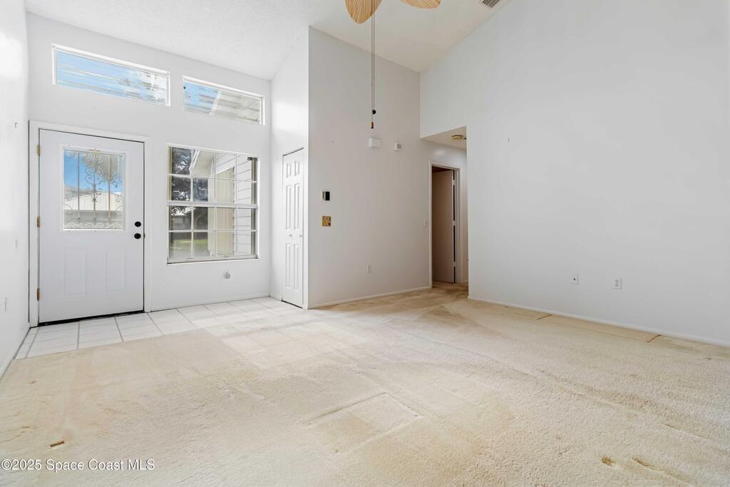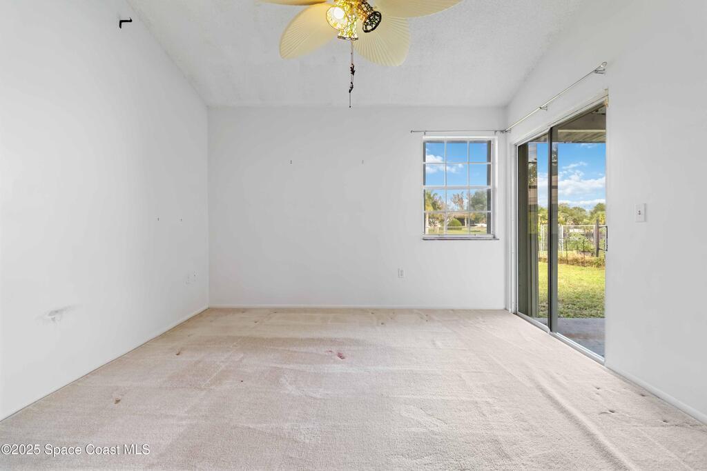 This townhouse offers affordable living with 3 bedrooms, 2 full baths, and has great bones with endless potential! A NEWER ROOF (2023) and storm shutters provides peace of mind, while vaulted ceilings and a split floor plan offer natural light and functionality. The primary suite includes an en suite with private bath and tiled walk-in shower. The spacious living area and dining area boast relaxing WATER VIEWS. Step outside to enjoy a generous backyard - plenty of room to unwind or create your own outdoor retreat. Washer and dryer included. No HOA! Conveniently located near shopping, dining, I-95, only 20 min to Kennedy Space Center, NASA, Blue Origin, and SpaceX, 20 min to the beach, 35 min to Orlando airport and area attractions!