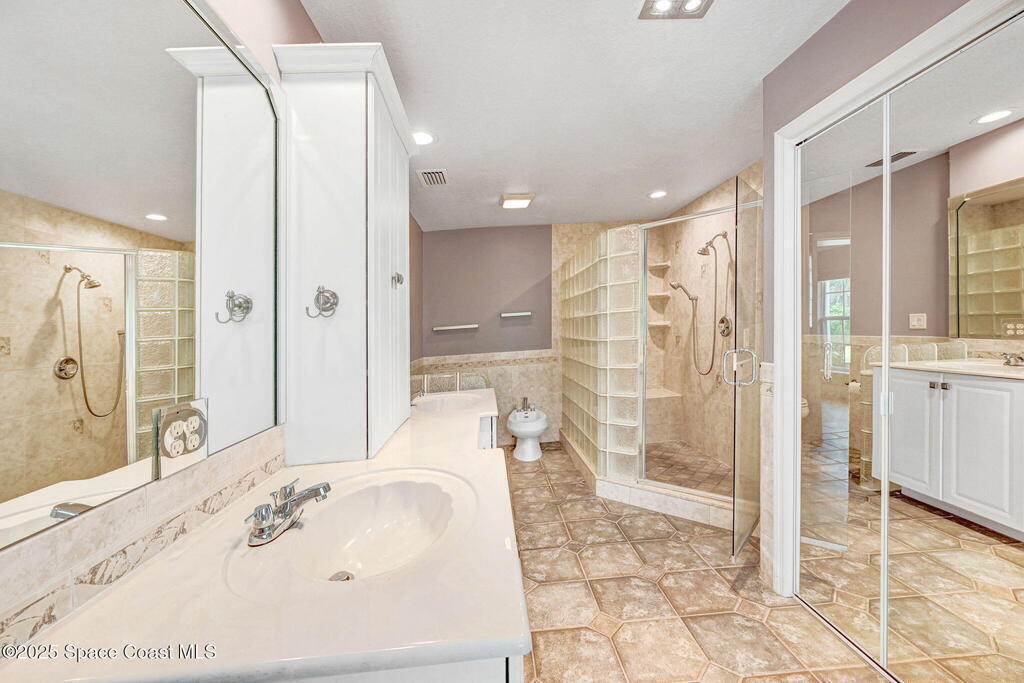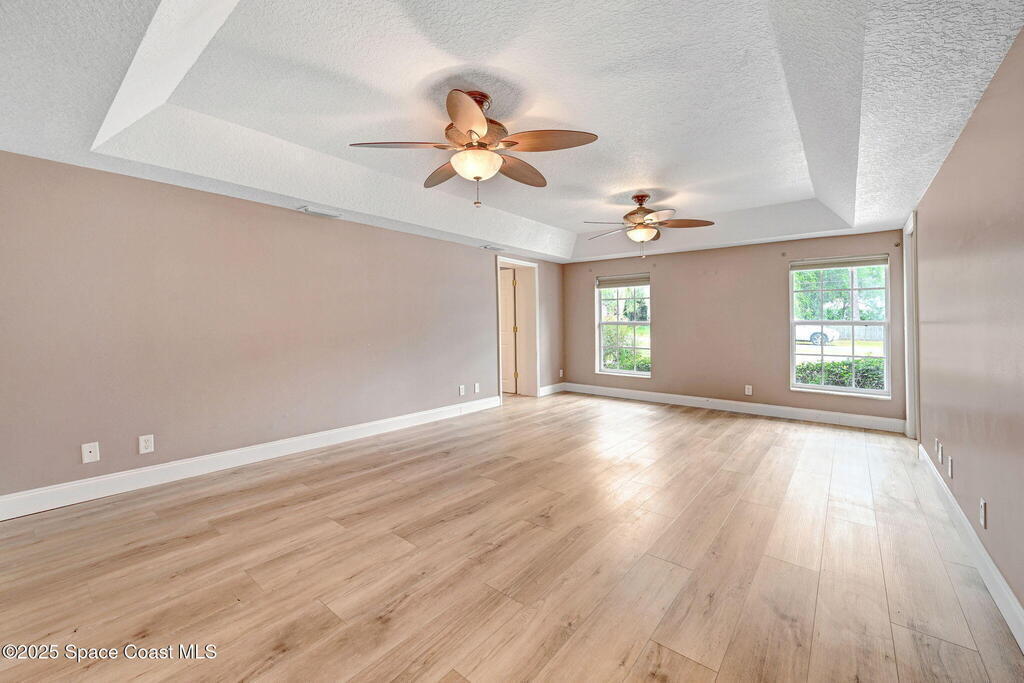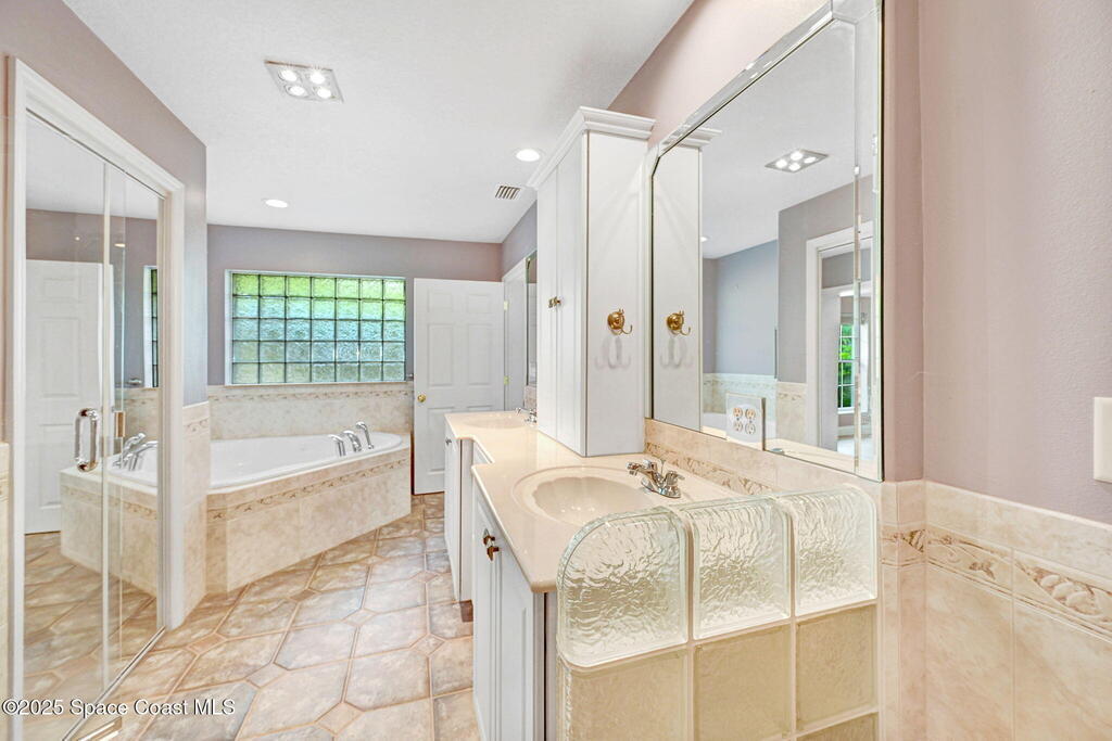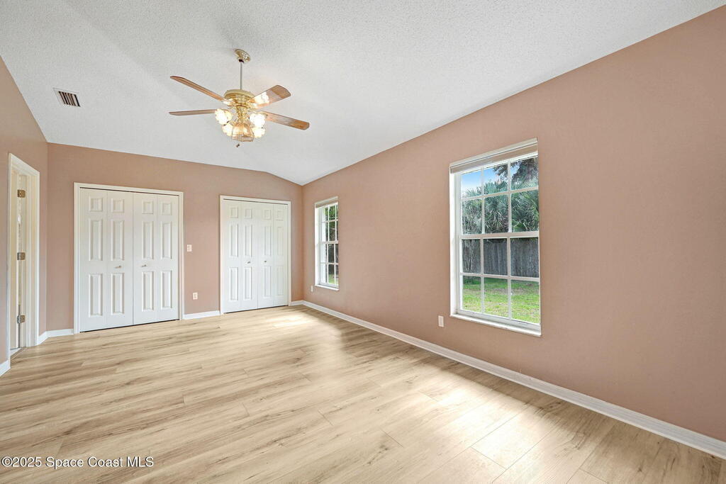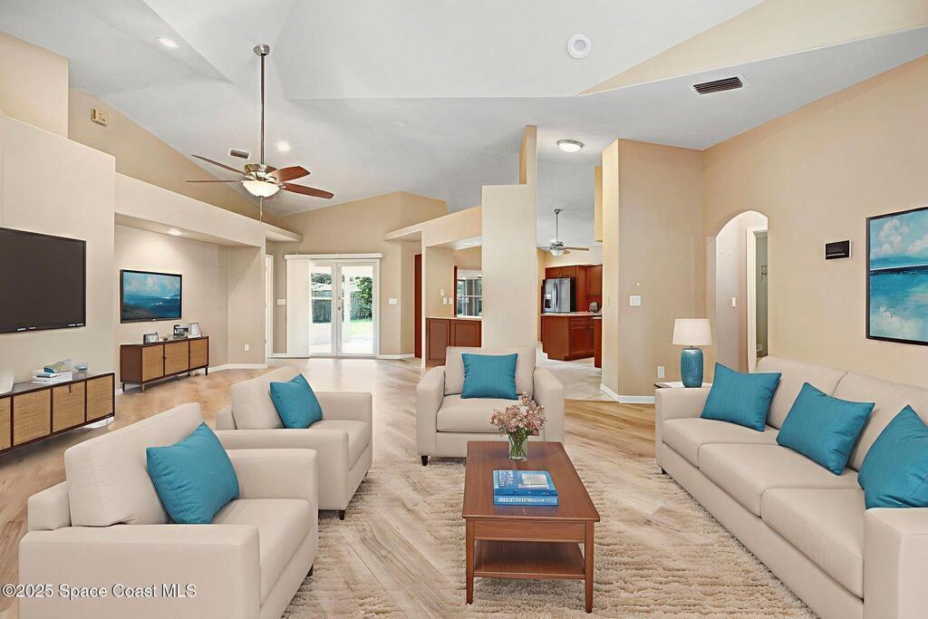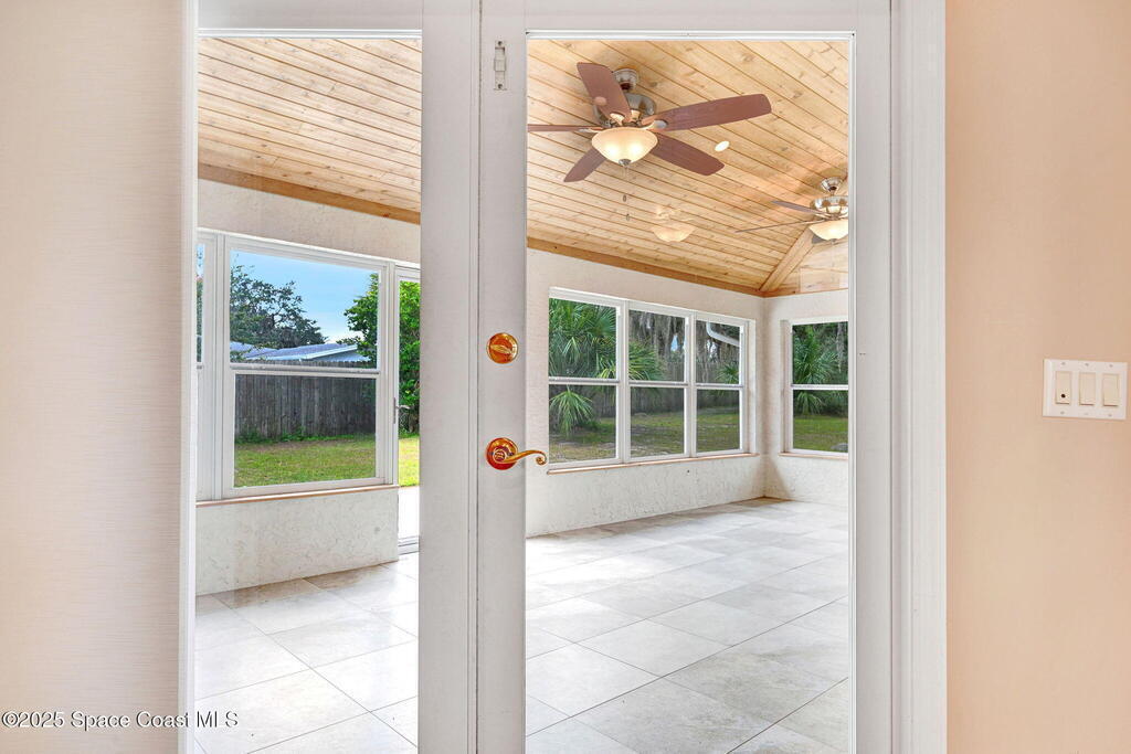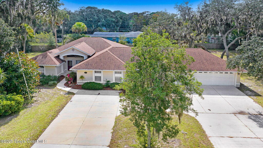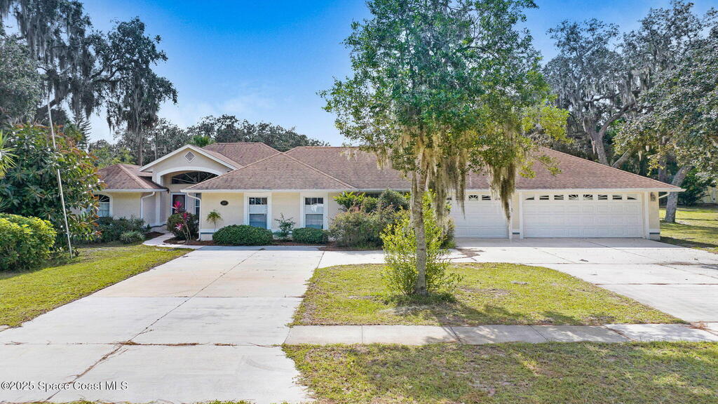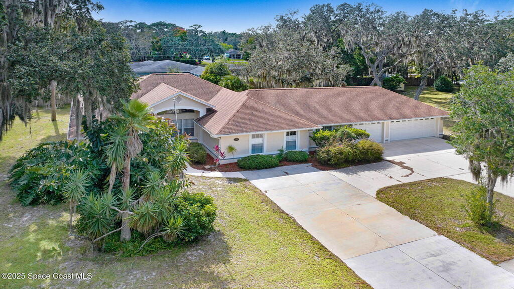 Immaculate 4BD/3.5BA 3 Car Garage + Golf Cart parking on .96 acres. This home offers 2,382 SF of light-filled rooms, updated living area . A stunning custom kitchen remodel showcases granite counters, stainless appliances, 2 pantries w/ two islands. Spacious open layout includes wood-look laminate & ceramic tile, vaulted ceilings so many details. French doors to your enclosed sunroom from the living room, perfect for seamless indoor-outdoor living. Two primary suites features, a walk-in closet, & a gorgeous primary suite bath jetted tub, dual vanities & glass shower. Two guest rooms, updated full bath, and generous laundry room w/ lots of storage, adds comfort & flexibility. Over size 3-cargarage 952 SF w/huge Driveway & a private backyard oasis to make your own add a pool. NO HOA so bring the toys plenty of room to roam. Fully Move-In Ready turn key. Close to OIA, Space Force, & beaches .