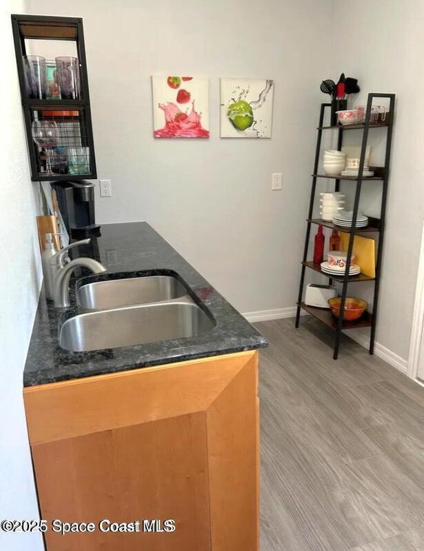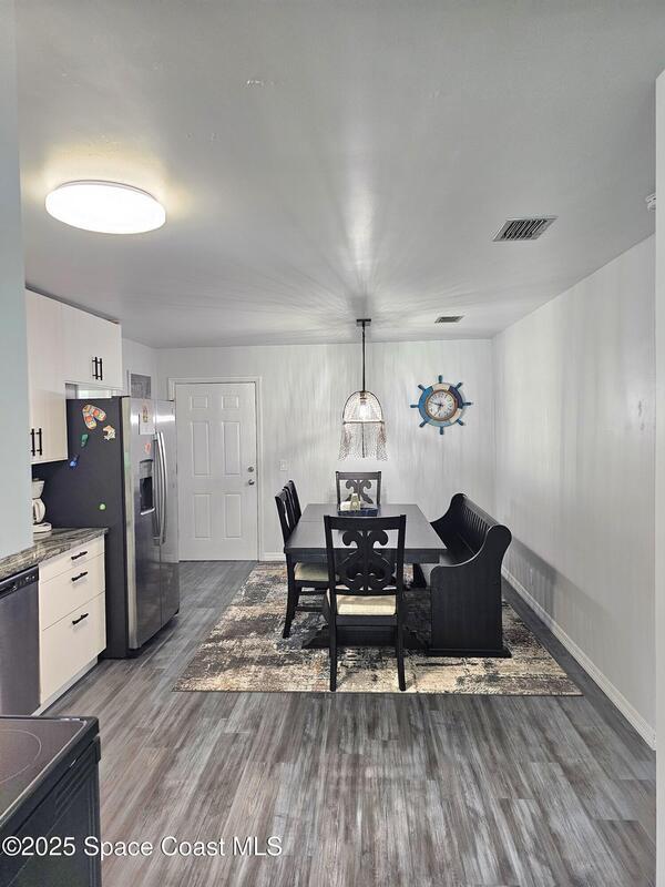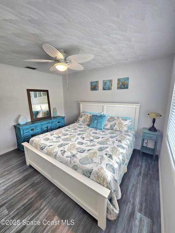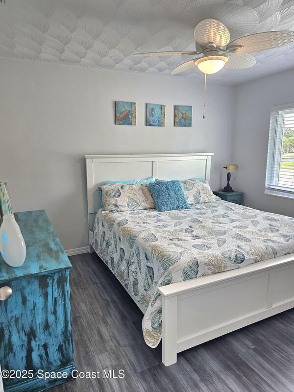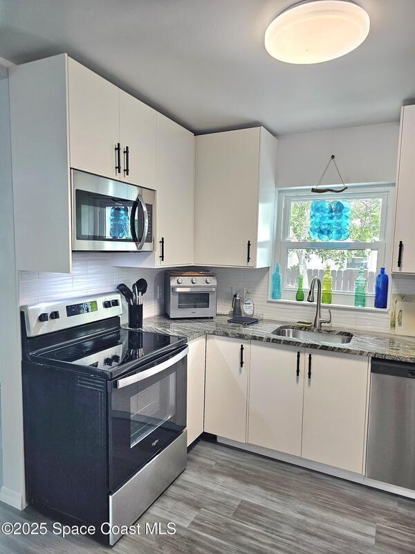 This adorable cottage style home comes fully furnished and offers a true-mother-in law suite. The main living area has 2 spacious bedrooms, full bathroom, large living room, kitchen/dining area and oversized laundry area. The in-law suite has a living/dining area, thoughtfully appointed kitchen with full size appliances, full bathroom with stackable washer and dryer, and private bedroom. Roof, ac, water heater and electrical panel all updated in 2023, and all new hurricane rated windows installed in 2025. Located close to downtown Melbourne, hospitals, Melbourne airport, shopping, restaurants and the 192 Causeway.