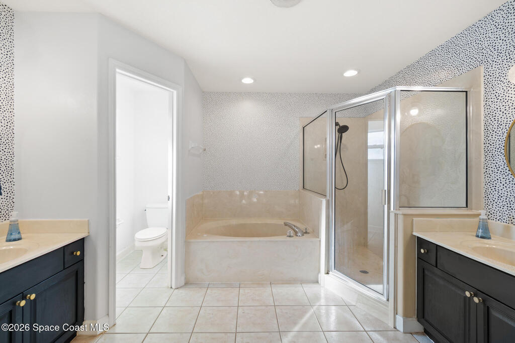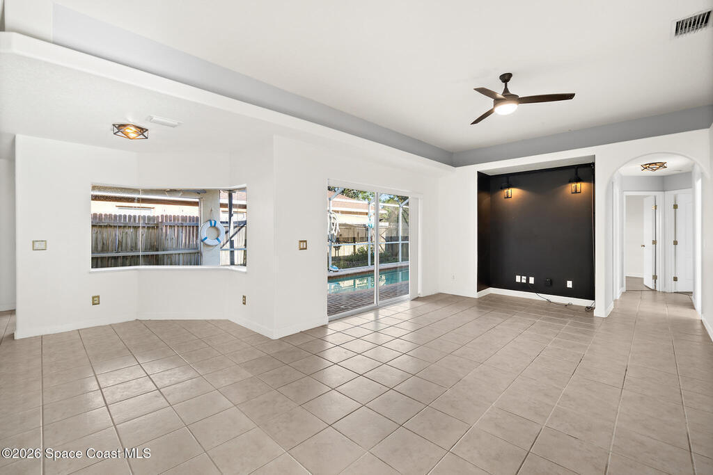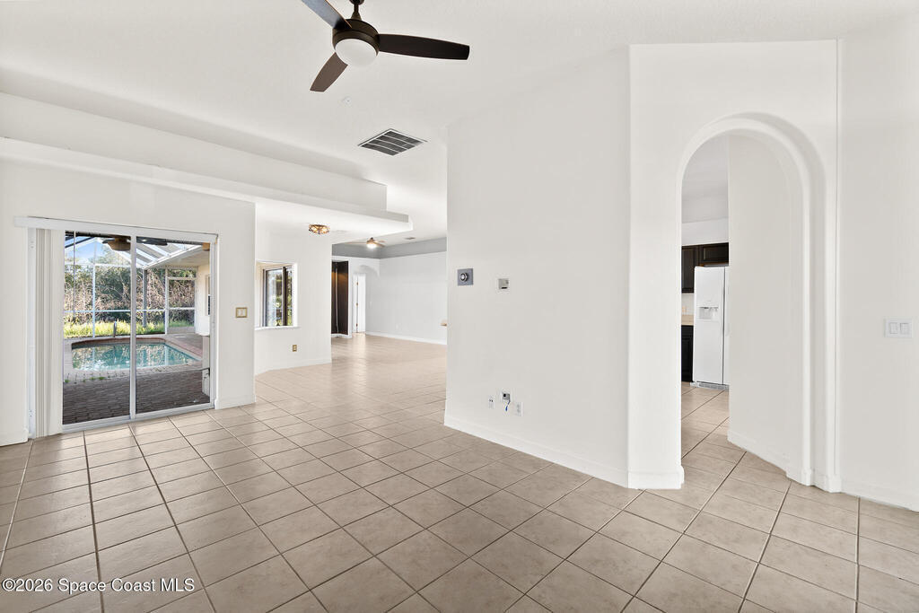 5-bed, 2-bath pool home on a quiet cul-de-sac in the desirable Viera East, Somerville neighborhood. Enjoy over 2,000 sqft of open-concept living with a split-bedroom floor plan and tile floors throughout the main areas. The updated kitchen features Corian countertops, newer stainless steel appliances, a walk-in pantry, a breakfast bar, and a convenient laundry room. The spacious living and dining areas have nook areas for casual dining or office space, with sliders to the back patio. The primary suite includes his & hers closets, a jetted tub, separate shower, and dual vanities. A bonus room with French doors and closet makes an ideal den or 5th bedroom. Embrace resort-style Florida living with your private screened pool, paver patio, and serene preserve views in the backyard. This home blends style, comfort, and prime location; only a half-mile from top-rated Ralph Williams Elementary and Clubhouse Park, and just 4 miles from The Avenue Viera shopping & dining.