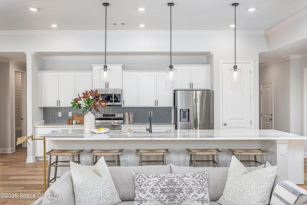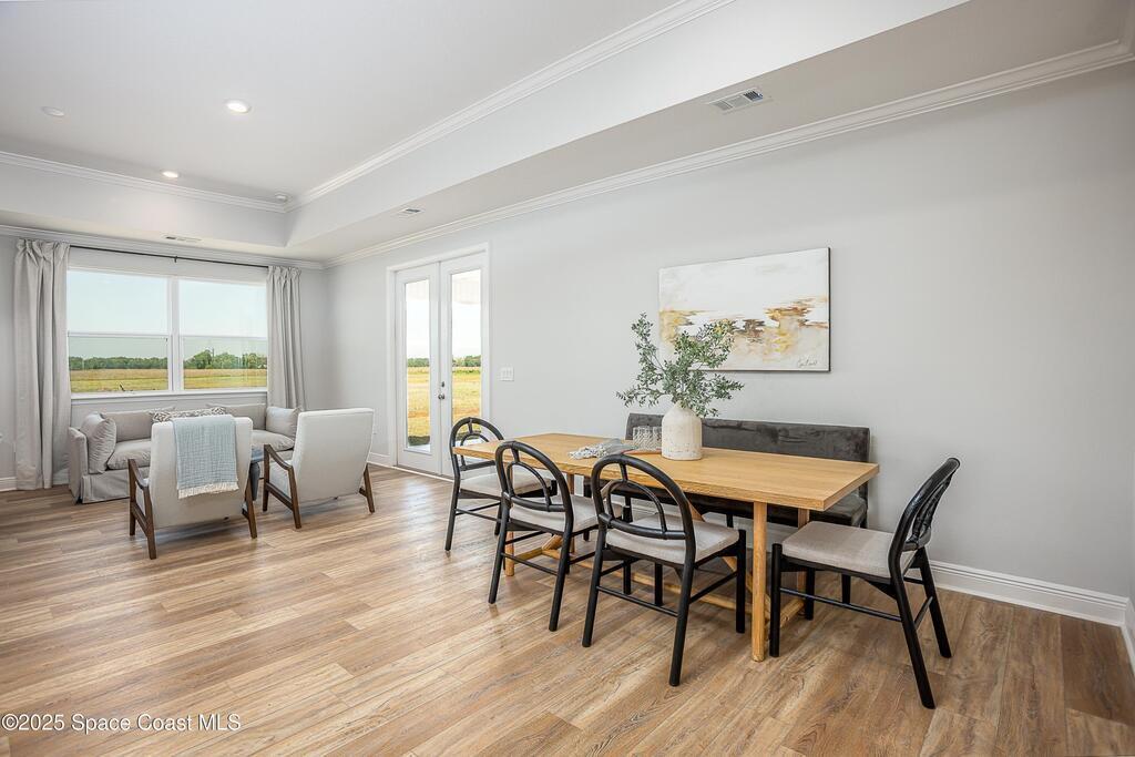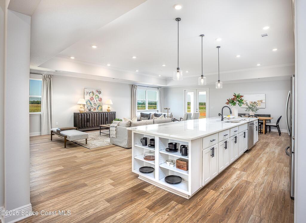 Under Construction. Island Forest Preserve - Gated Living on Merritt IslandExperience the perfect blend of elegance, comfort, and innovation in this stunning Sienna home--nestled on an oversized, level corner lot within the gated community of Island Forest Preserve. Designed for both everyday living and exceptional entertaining, this residence showcases timeless design and thoughtful upgrades throughout.Step through the brick-paved entry and into a light-filled foyer framed by 9'4'' ceilings and a seamless flow of luxury vinyl flooring through the main living areas. French glass doors open to a versatile den, ideal for a home office or creative retreat. The heart of the home--an impressive open kitchen--features quartz countertops, a large island, soft-close cabinetry, tile backsplash, and a full suite of modern conveniences, all overlooking the expansive great room & dining area. Every detail was considered, from cordless blinds & upgraded carpet in the bedrooms to the guest suite