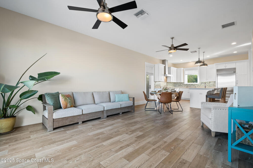 Direct Oceanfront Cocoa Beach Luxury -- Privately gated and custom-built in 2011, this exceptional residence blends timeless design with modern craftsmanship. Wide-open living spaces filled with natural light flow seamlessly to an expansive 800-square-foot oceanfront deck for effortless indoor-outdoor living. The chef's kitchen features natural gas cooking and a Bertazzoni Italian range. The upstairs primary suite is oversized with a private oceanfront porch offering the home's most captivating views. Three additional bedrooms are downstairs, including a private guest suite with its own bath and access to a screened patio. An oversized two-car garage with a versatile guest suite or office above overlooks the river, while a backyard putting green adds the perfect coastal finishing touch.