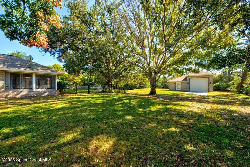 Your secluded dream home awaits on this 1- acre lot oasis! This classic brick home offers modern living with timeless appeal. Great flowing floor plan that seamlessly connects the living spaces with a double-sided fireplace that serves as the heart of the home. Updated kitchen with 2 pantries, large island, pullouts throughout and quartz countertops. Expansive private grounds offer a rare blend of space with unattached guest house/in-law quarters/teenager retreat or Granny flat with 1 BR, family room & kitchenette with its own septic tank and attached garage for RV/the car collector/craft room/game room/ storage etc. Main house features 4 BR 2 BA with both combining spacious 2505 sq. ft. Large master suite featuring a generous walk-in closet, dedicated dressing area with vanity, and a well-appointed bathroom. A versatile, enclosed Florida room, offers additional entertaining space, accessible from the outdoor deck. Community offers amenities galore!