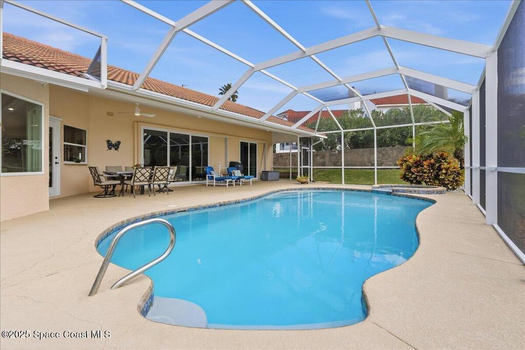 Ever dream of owning a piece of beachside paradise? Here's an opportunity to do just that. This incredibly maintained, bright & open home is located in a quaint community within easy walking distance to the beach. The community is small contributing to the friendly & caring atmosphere of the neighborhood. You'll appreciate right away the pride that the sellers have had in their home as you notice the updates that have been added in recent years. Some of these include a tile roof ($50K), brand new pool cage, screening & super gutter ($20K), kitchen & both bath remodels ($60K), pool resurface ($14K) and impact sliding glass doors ($17K) to name a few. How enticing it is to buy a home where majority of the work has already been done for you. As you walk in the front door you'll love the view through the huge sliding doors overlooking the crystal blue pool and out to the relaxing private pond. Imagine having your morning coffee out on the rear porch--this is Florida living! Don't wait!