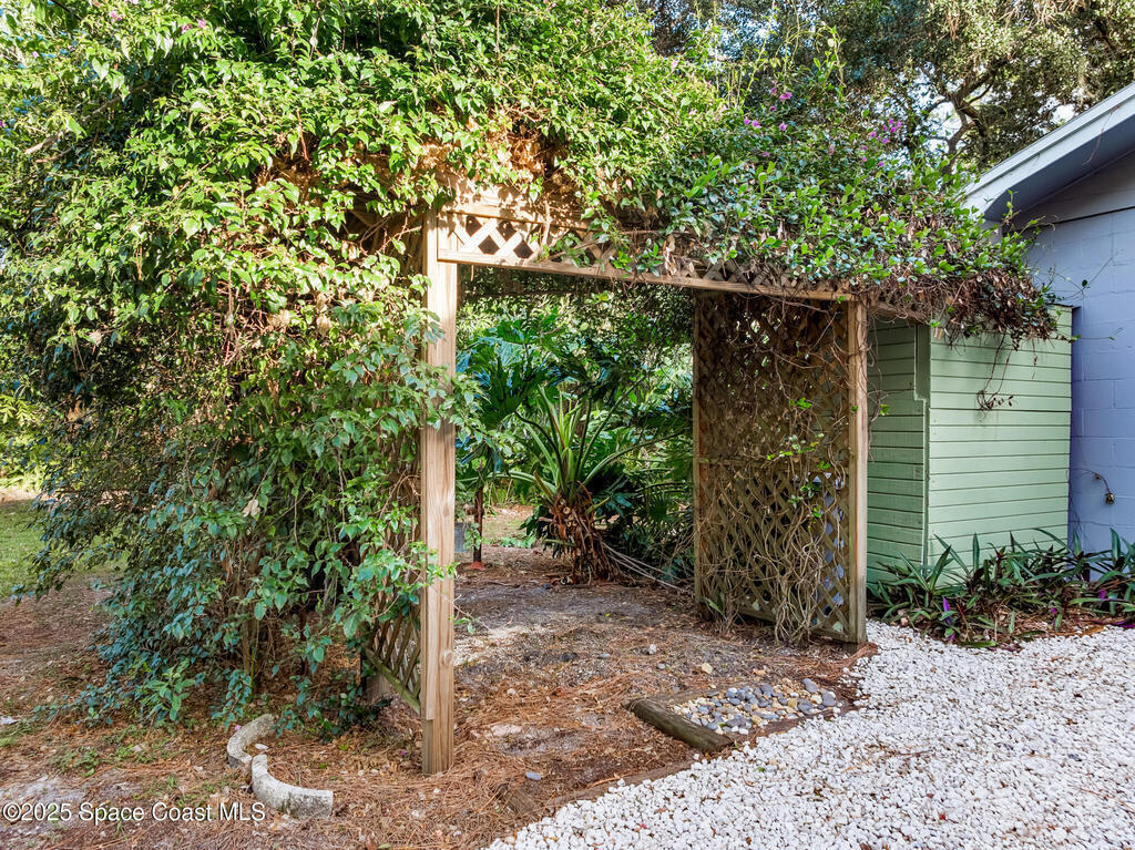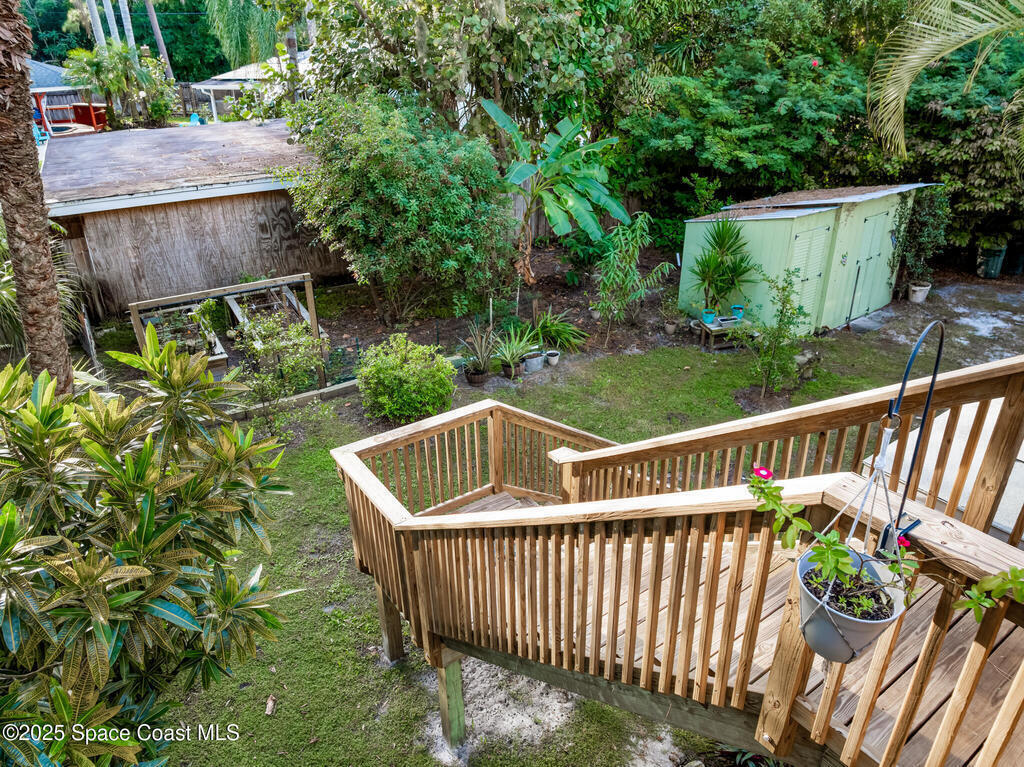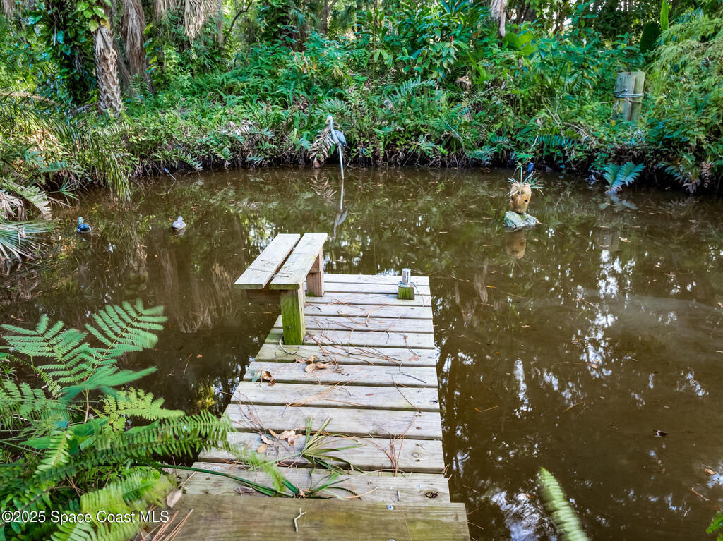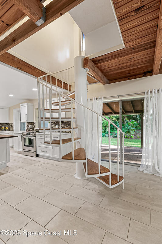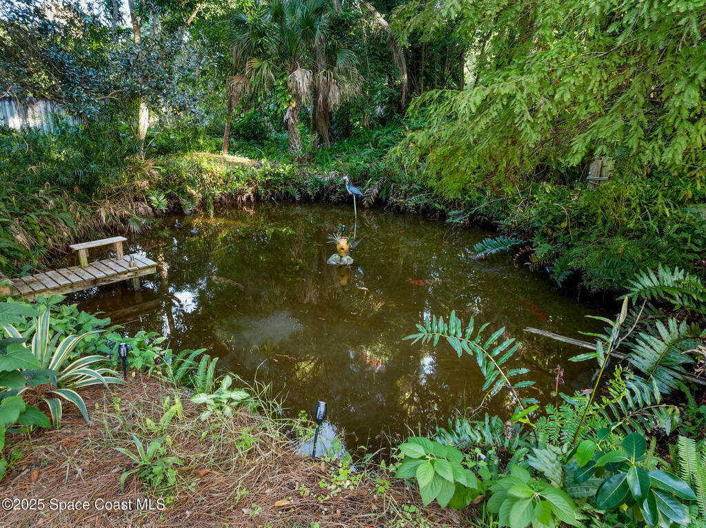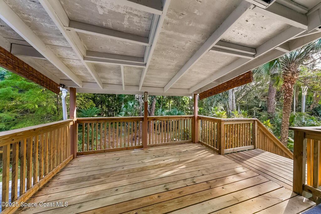 NO HOA ,TRAILERS, BOATS, RV's , NO PROBLEM! Newer Roof, New Deck/Balcony & Staircase. This charming 4/2 home blends mid-century character with thoughtful modern updates. LARGE LOT at .58-acre , surrounded by mature landscaping, nature trails, and a peaceful community known for its park-like setting. With ORIGINAL hardwood floors, tongue-and-groove ceilings, and exposed wood beams, complemented by a REMOLDED KITCHEN (2021) featuring quartz countertops and updated appliances. Upstairs, the expansive primary suite spans the entire 2nd floor and includes NEW CARPET and a wood-burning fireplace, HUGE walk-in closet, and ensuite bath, the perfect spot to enjoy tree-top views and Florida breezes. The grounds are truly special, with many varieties of mature fruit trees, an artesian-fed pond with waterfall, chicken coop, a Gardeners paradise! NO CAST IRON Pipes!