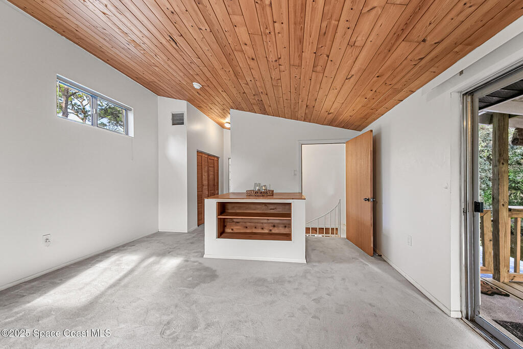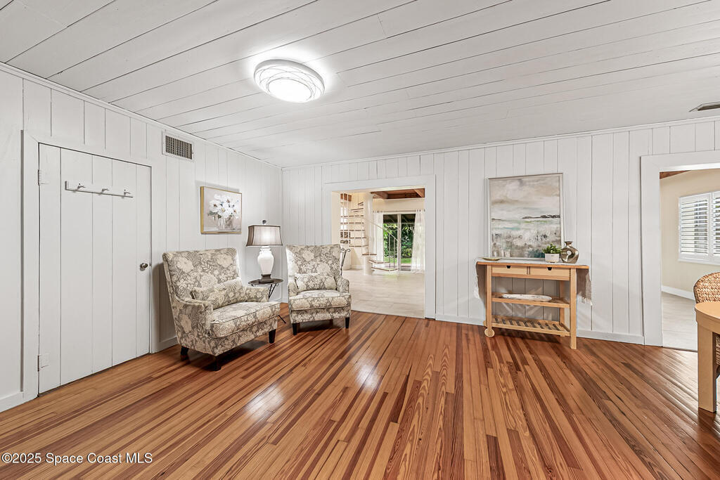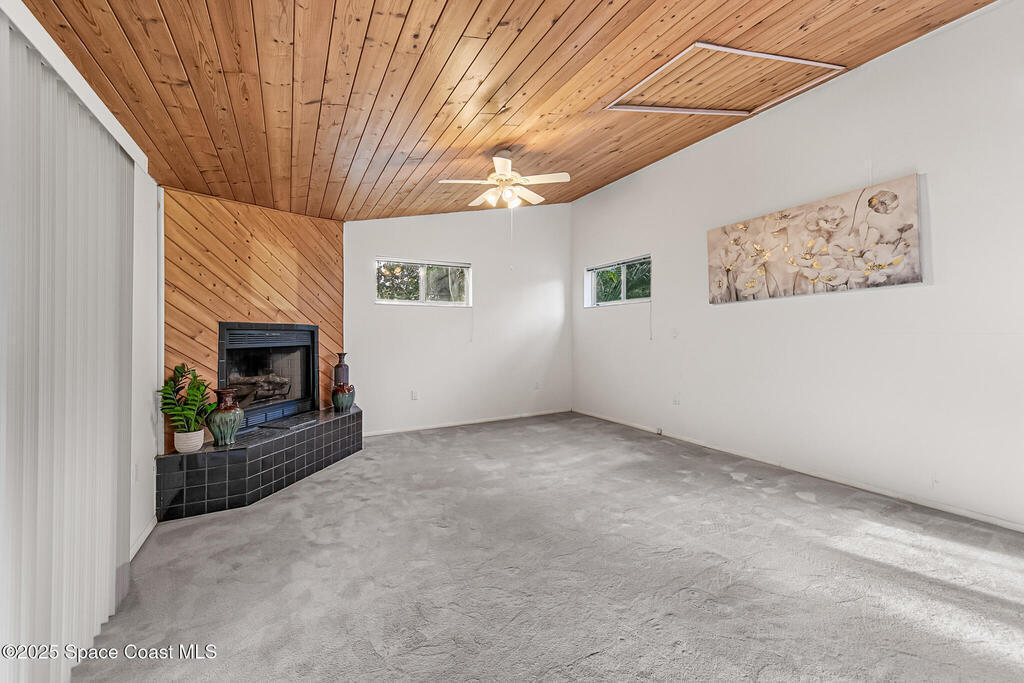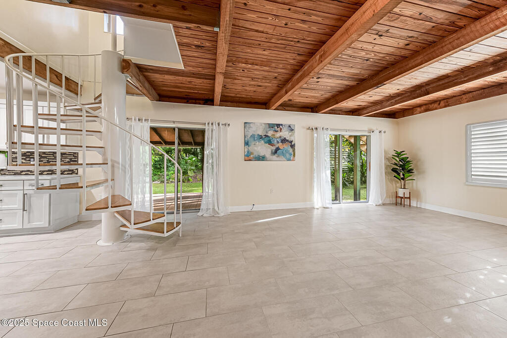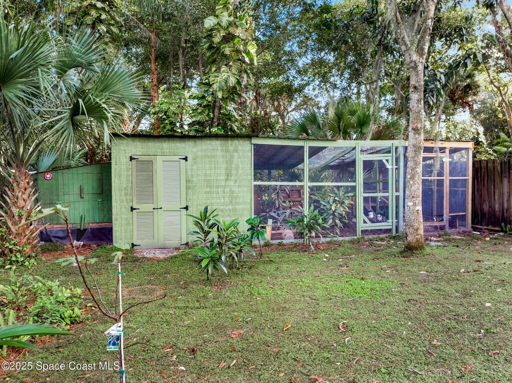 NO HOA ,TRAILERS, BOATS, RV's , NO PROBLEM! Newer Roof, New Deck/Balcony & Staircase. This charming 4/2 home blends mid-century character with thoughtful modern updates. LARGE LOT at .58-acre , surrounded by mature landscaping, nature trails, and a peaceful community known for its park-like setting. With ORIGINAL hardwood floors, tongue-and-groove ceilings, and exposed wood beams, complemented by a REMOLDED KITCHEN (2021) featuring quartz countertops and updated appliances. Upstairs, the expansive primary suite spans the entire 2nd floor and includes NEW CARPET and a wood-burning fireplace, HUGE walk-in closet, and ensuite bath, the perfect spot to enjoy tree-top views and Florida breezes. The grounds are truly special, with many varieties of mature fruit trees, an artesian-fed pond with waterfall, chicken coop, a Gardeners paradise! NO CAST IRON Pipes!