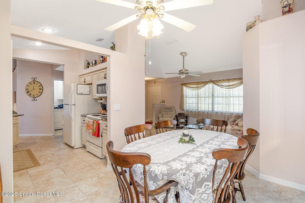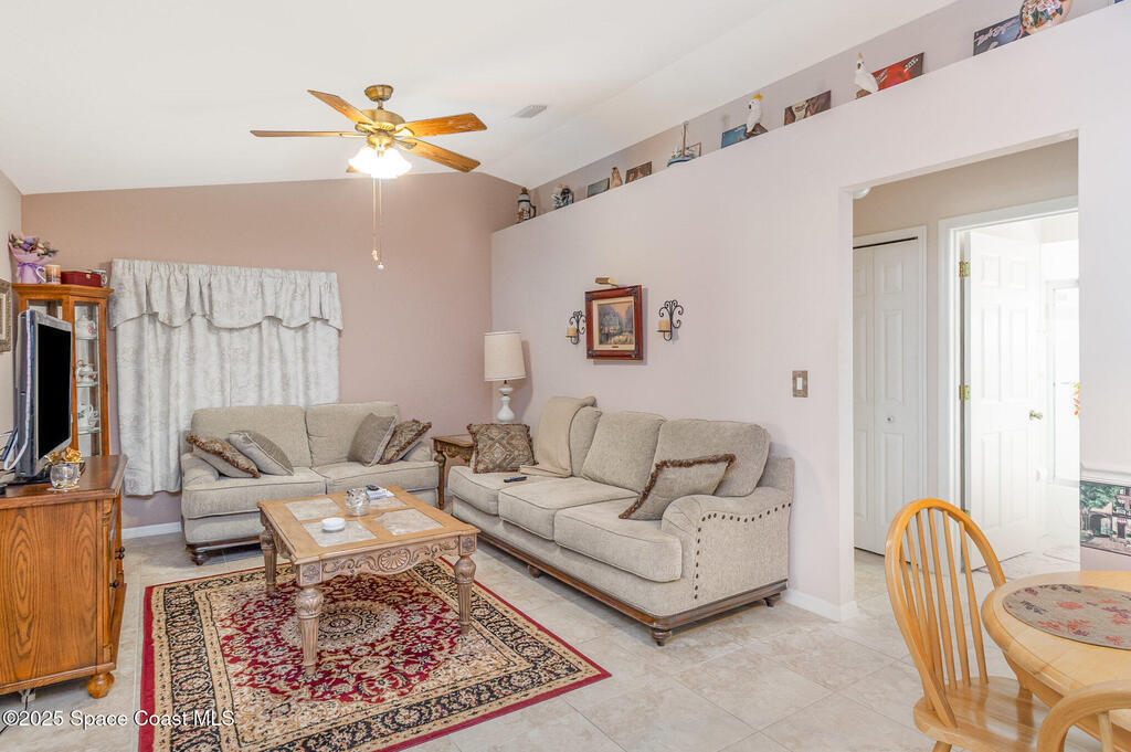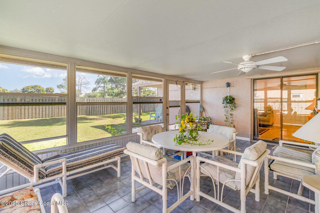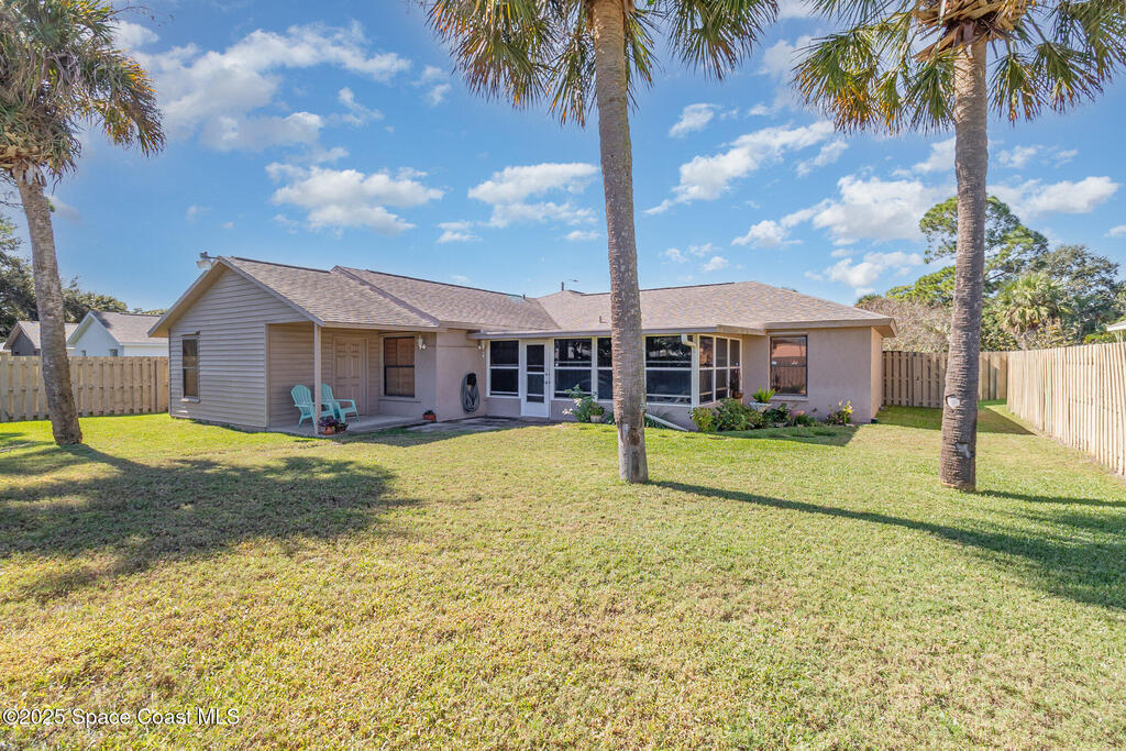 This beautifully maintained 3-bedroom, 2-bath home with a 2-car garage is located in a desirable community just minutes from beaches, shopping, I-95, FIT, and Harris. Enjoy vaulted ceilings, a bright formal living and dining area, and a comfortable family room. The upgraded kitchen features soft-close cabinets, beautiful granite, a pantry, and a picture window overlooking the patio -- great for entertaining. The split floor plan offers a private primary suite with a master bath featuring a dual vanity and linen closet. The screened, tiled patio opens to a landscaped, fenced backyard with a powered workshop. Additional features include, a newer roof (2017), water heater (2022), irrigation system, hurricane shutters, wired for a security system, and a Ring doorbell. A wonderful home in a convenient, central location -- come see this one today!
