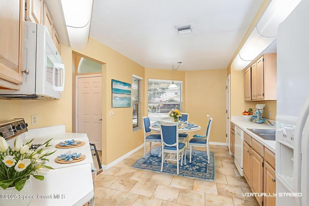 Welcome to La Cita, a sought-after gated golf community in Titusville! This charming 2-bedroom, 2-bath home with a BRAND NEW ROOF offers a relaxing lifestyle with low-maintenance living--the HOA maintains the lawn so you can spend more time enjoying the Florida sunshine. Step into the enclosed back porch overlooking a lush, tree-lined yard that provides shade and privacy. From the front lawn, you can watch rocket launches from nearby Kennedy Space Center, SpaceX, and Blue Origin--a true Space Coast experience! Conveniently located near US-1, shopping, dining, and beaches, this home combines peaceful living with an unbeatable location. Whether you're seeking a primary residence, seasonal retreat, or investment property, this La Cita gem is ready to welcome you home.