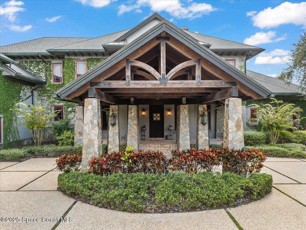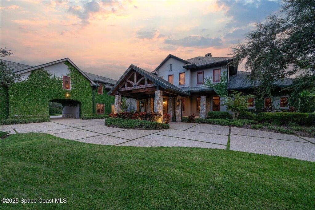 Welcome to 586 Wethersfield Place, an unparalleled luxury sanctuary nestled in the heart of Melbourne, Florida. This exquisite property redefines opulence offering discerning buyers a unique blend of grandeur and privacy. A Masterpiece of Architectural Excellence and constructed with the utmost attention to detail, this property stands proudly on a solid concrete poured block foundation, meticulously reinforced with double steel rebar ensuring both strength and security. Imagine waking up to the serene views of a protected wildlife preserve while enjoying complete privacy on this north-south-oriented lot. The award-winning landscape, designed by Susan Hall, enhances the beauty of this estate with antique, reclaimed Chicago brick adding layers of history and character. Dive into relaxation with your own 85,000-gallon saltwater pool and spa, bathed in sunlight for 12 hours daily, yet cleverly designed to keep the home cool.
