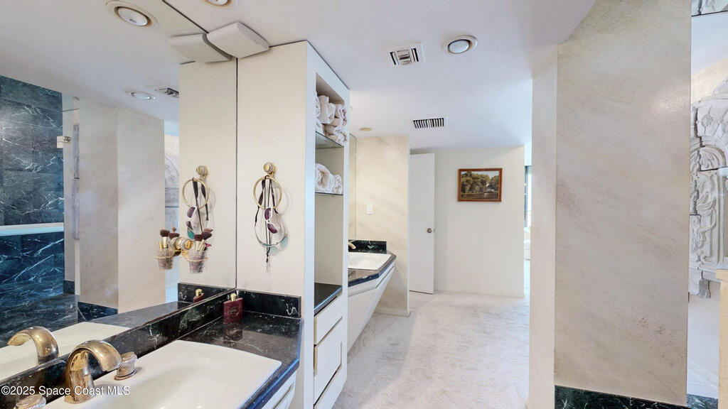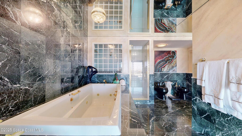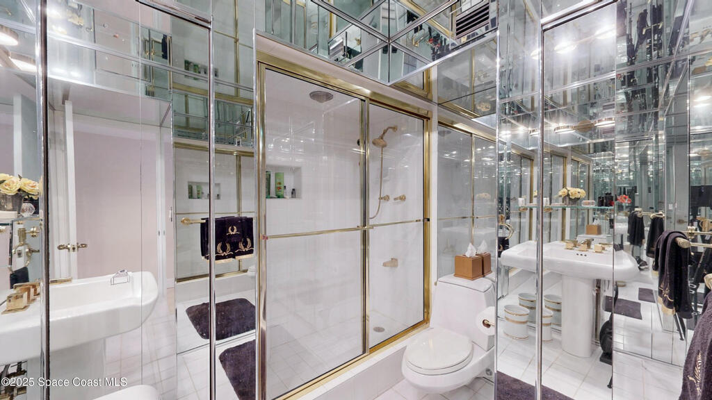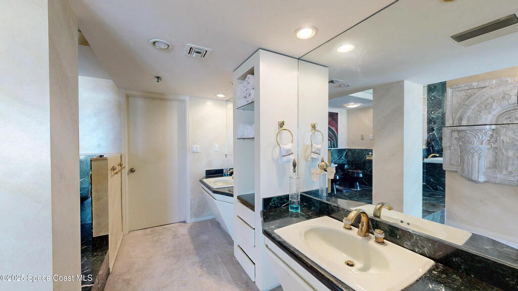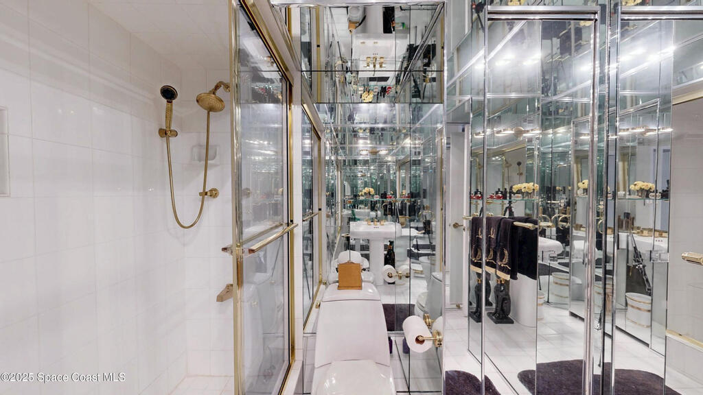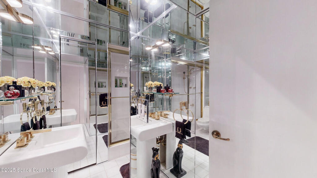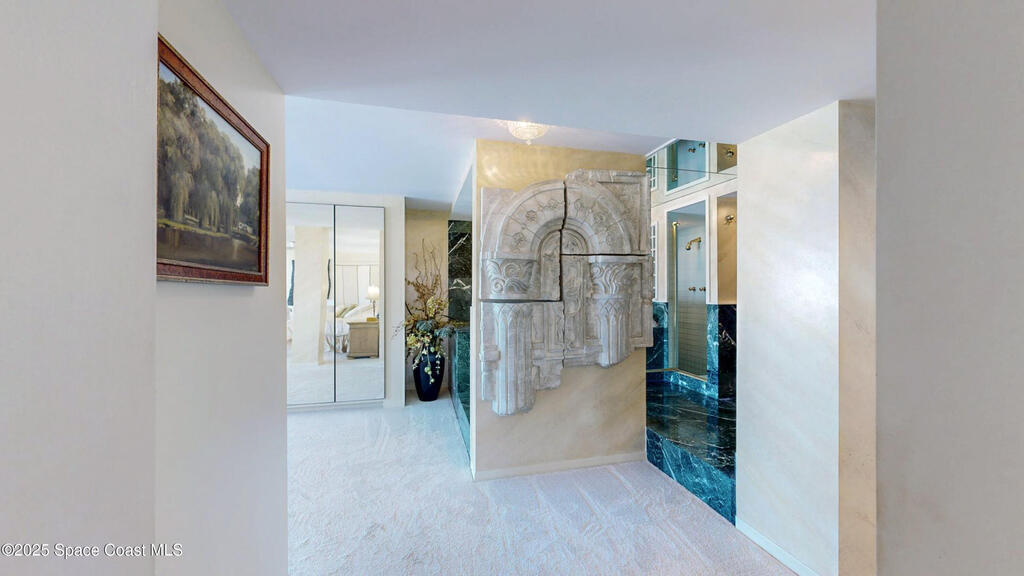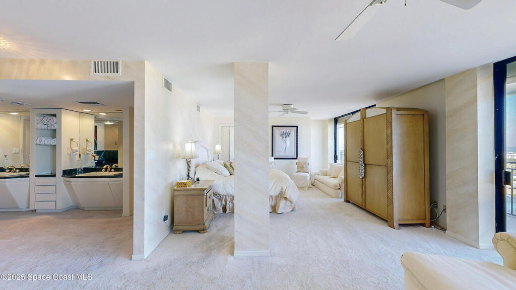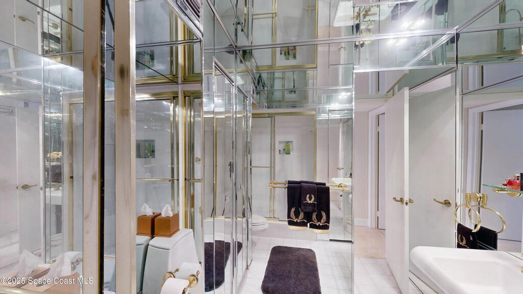 Welcome to luxury living at the exclusive 2100 Towers in the heart of Cocoa Beach. This breathtaking 13th-floor corner penthouse offers unparalleled, unobstructed panoramic views of the Atlantic Ocean, Thousand Islands, Banana River, Port Canaveral, and even a front-row seat to rocket launches from the Kennedy Space Center. Private expansive wraparound balcony -- perfect for relaxing, entertaining, and soaking in the coastal beauty. Inside, the unit exudes sophistication with gleaming marble floors, elegant custom lighting, designer chandeliers, and sleek finishes throughout. The open-concept living & dining areas flow seamlessly, featuring floor to ceiling windows and sliders with spectacular views, a custom book case with TV cabinet and ample storage. The gourmet kitchen, designed by award-winning interior designer Antoinette Prisco, boasts high-end appliances including a Subzero refrigerator, Thermador oven and large Avanti wine cooler. Features a 2 car garage plus storage unit!